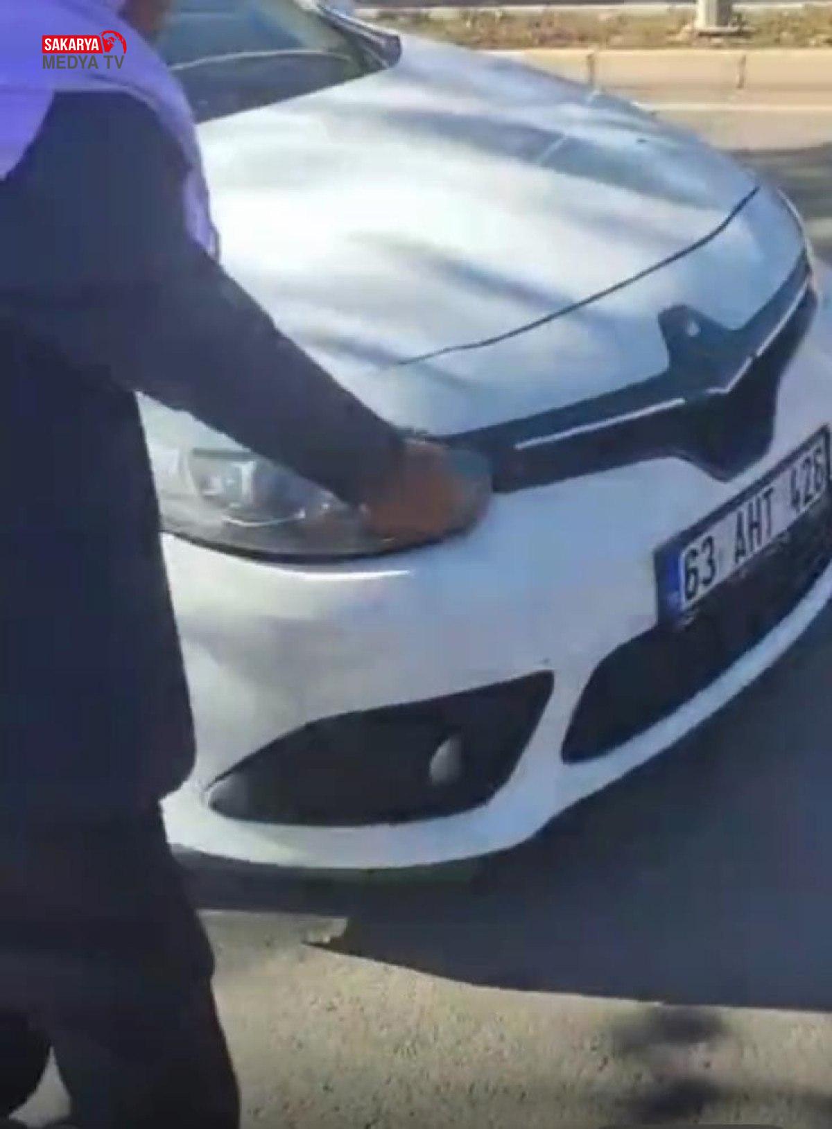 Tartışma sırasında tansiyon yükselirken, kazadan ziyan gören şoför, öbür aracın çekme halatını göstererek bu halatın hasara neden olduğunu öne sürüyor.