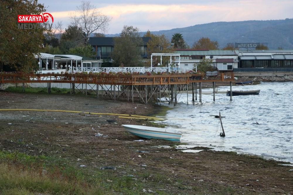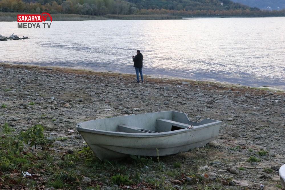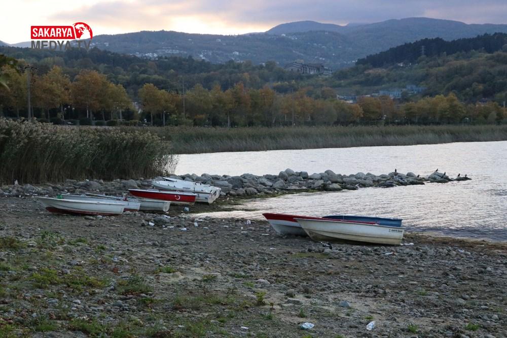 Sapanca ilçesine ismini veren gölde yaşanan su kaybıyla iskelelerin büyük kısmı susuz kaldı, göldeki kayıklar büsbütün karaya oturdu.