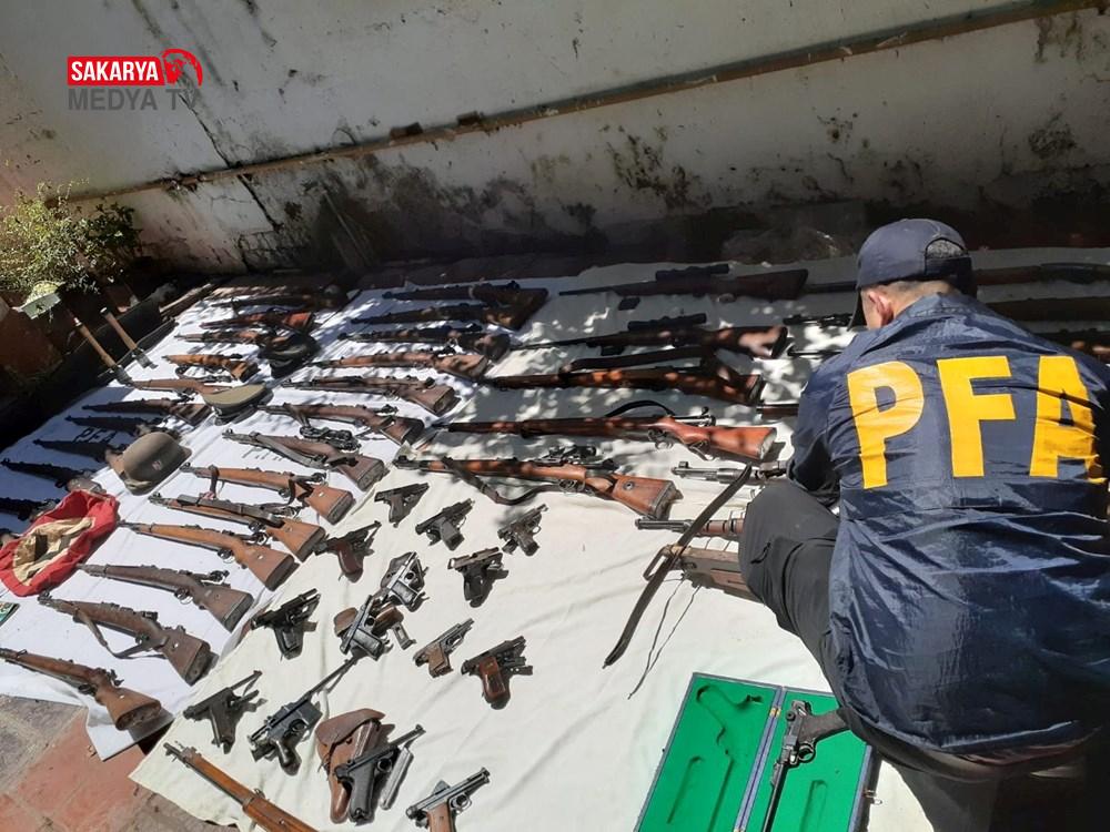 Baskın sonucunda gözlatına alınan şüphelinin evinde, Nazi amblemi taşıyan 43 tüfek, 15 tabanca, 5 süngü ve bir makineli tüfek dahil olmak üzere 60’tan fazla ateşli silahın ele geçirildiği belirtildi.
