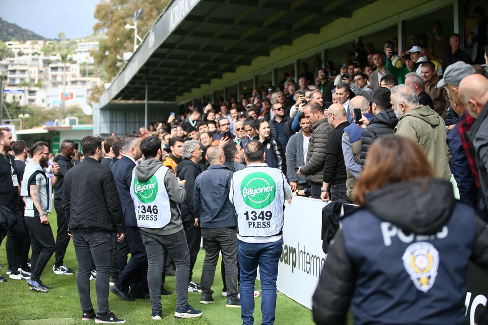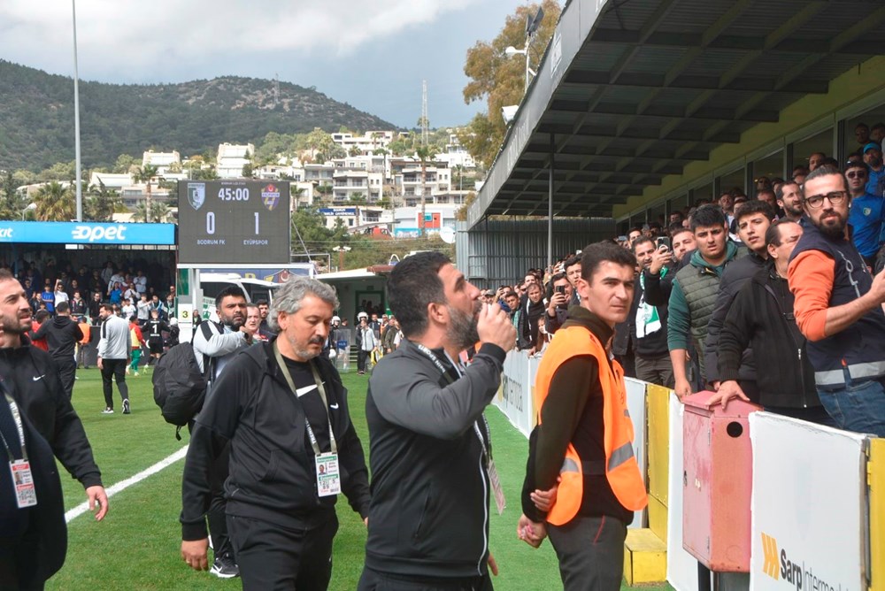 Bodrumspor taraftarları, maç boyunca Eyüpspor Teknik yöneticisi Arda Turan aleyhine tezahürat yaptı.