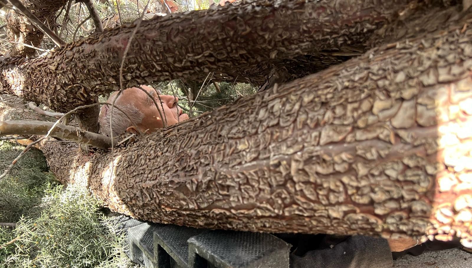 Adnan Ersan ile çalışmalara katılan oğlu belediye meclis üyesi adayı Taha Ersan, ağacın altında kaldı.