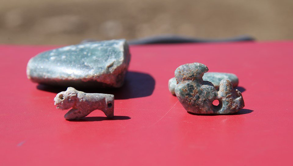 Geçmiş yıllardaki hafriyatlarda ortalarında yılan biçiminde olanların da yer aldığı çeşitli tiplerde, farklı ham unsurlardan üretilmiş boncukların (manevi bedeli yüksek obje) görüldüğünü lakin bu yıl birinci sefer leopar ile insan ve akbaba halli süs eşyasını bulduklarını belirten Güldoğan, şöyle konuştu: