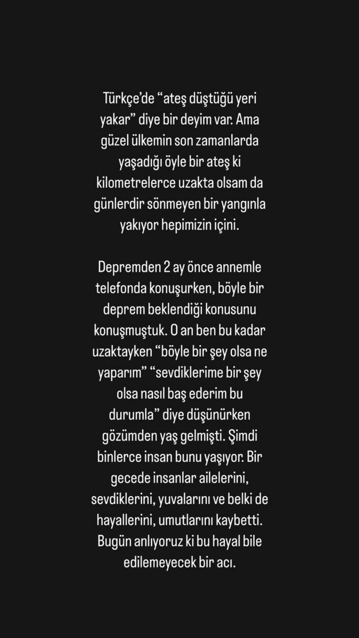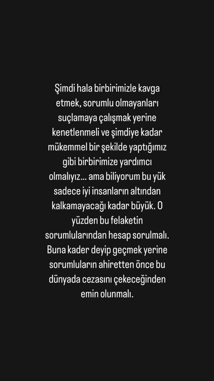 “Bugün anlıyoruz ki hayal bile edilemeyecek bir acı.” diyen Şeyma Subaşı, kenetlenme çağırısı da yaptı.