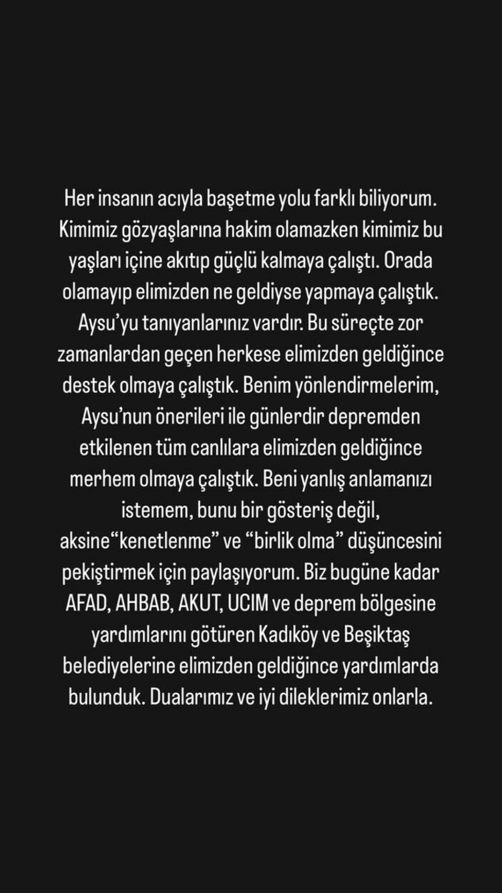 6 Şubat tarihinde Kahramanmaraş merkezli depremlerden sonra büyük kayıplar ve yıkımlar yaşandı. Hiçbir şey olmamış gibi sosyal medya paylaşımlarına devam eden Şeyma Subaşı, tepki görmüştü. Paylaşımları sonrası 400 bin takipçi kaybeden Şeyma Subaşı gündem olunca açıklama yaptı.