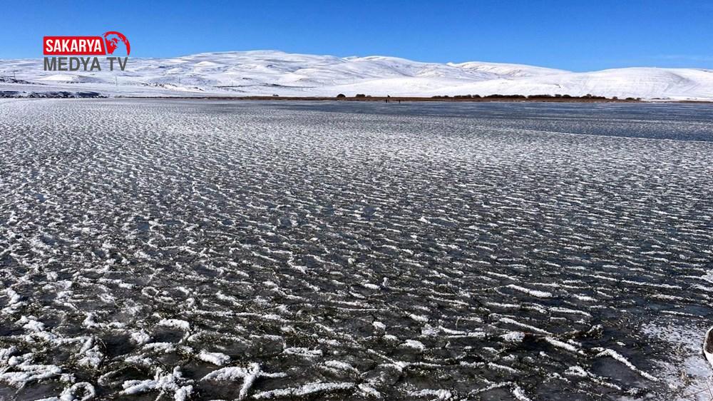 Kars’ta hava sıcaklığı geceleri sıfırın altında 18 dereceye kadar düştü. Kars-Ardahan hududunda yer alan Çıldır Gölü’nün Arpaçay köyü sonları içeresinde yer alan yüzeyi, soğuk hava nedeniyle kısmen dondu.