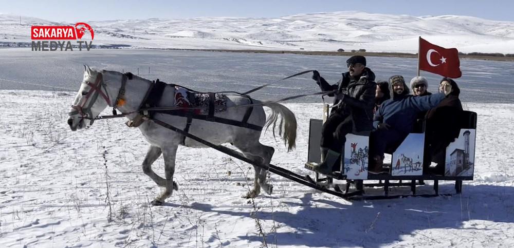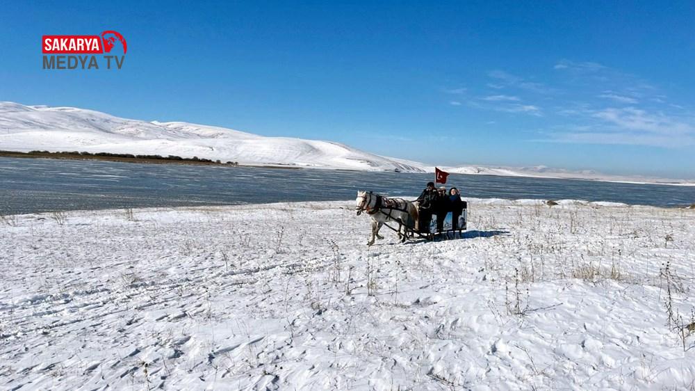 Her yıl binlerce yerli ve yabancı turistlerin uğrak yeri olan gölde atlı kızak işleten yapan Aziz Taşdemir (41), buz katmanının atları taşıyacak düzeyde olmaması nedeniyle müşterilere kıyıda hizmet verdiklerini söyledi.