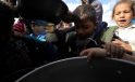 Gazze’de yerinden edilmiş Filistinliler yemek sırasında