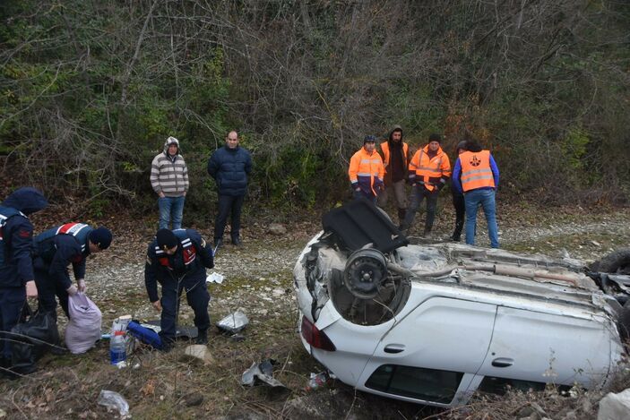 Araç, direksiyon hakimiyetinin kaybedilmesi sonucu takla atarak yolun sol tarafında bulunan su kanalına girdi.