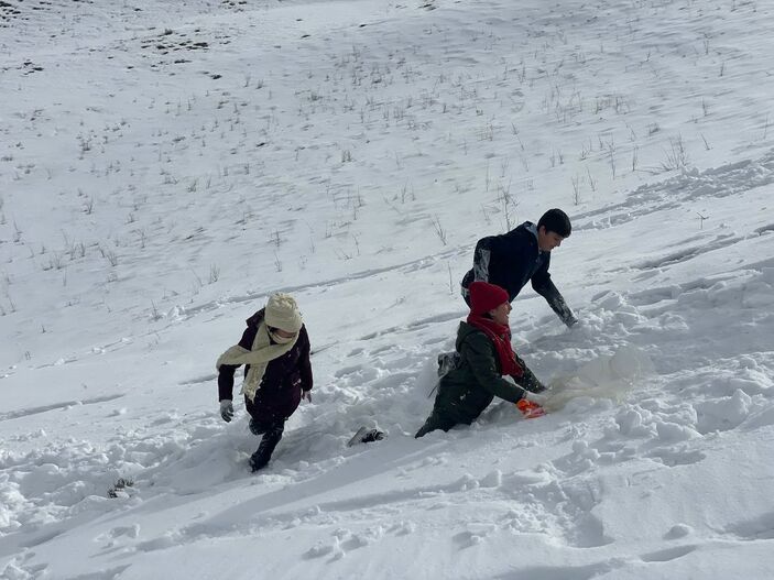 Karda kaymanın keyfini doyasıya yaşayan çocuklar bu sayede moral buldu.