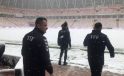 Sivasspor-Kasımpaşa maçının hakemi Burak Pakkan, ağır kar yağışı nedeniyle yeri karla kaplanan Sivas 4 Eylül Stadyumu’nun tabanını inceledi.