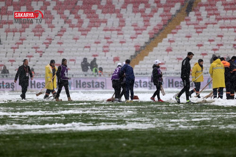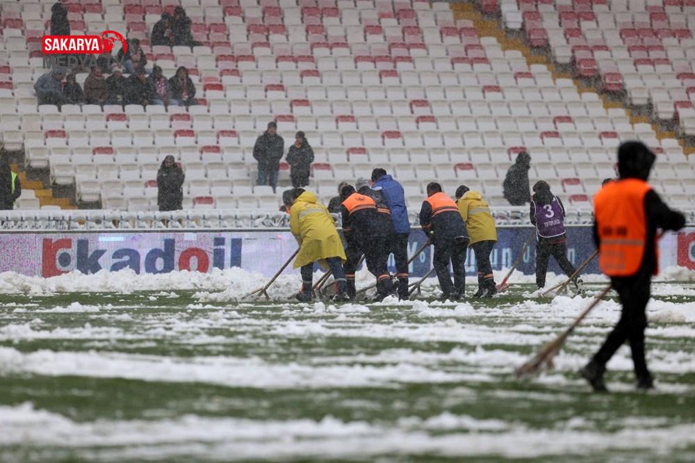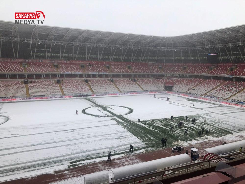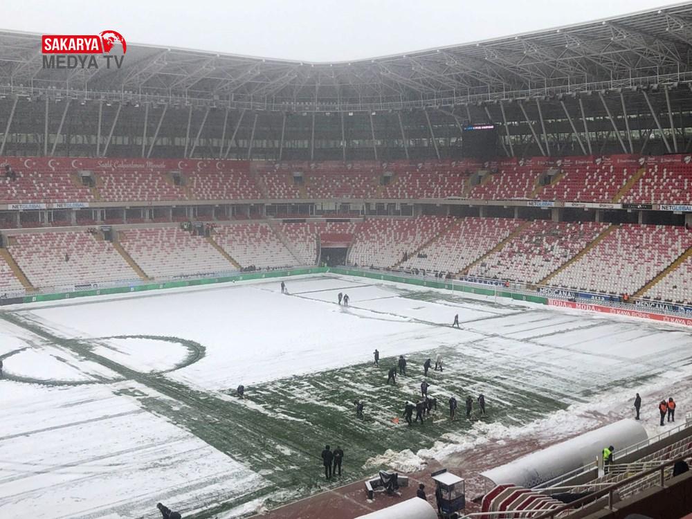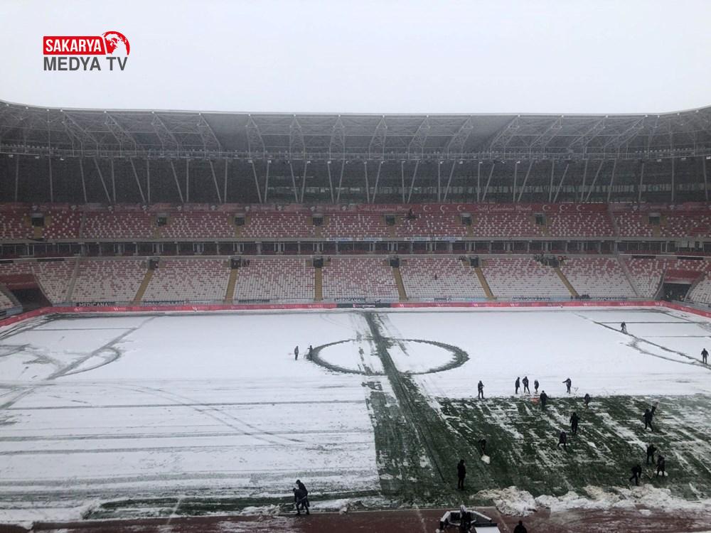 Sivas 4 Eylül Stadyumu’ndaki vazifeliler kar temizleme çalışmalarını sürdürürken,13.30’da başlaması planlanan gayretin birinci düdüğünde gecikme yaşandı.