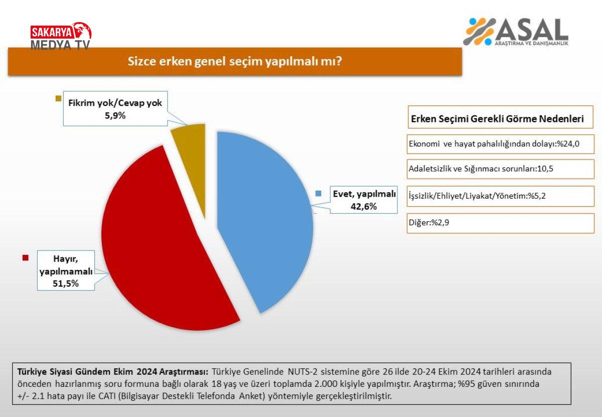 Ekim ayında 26 vilayette 2 bin şahısla yapılan ankette vatandaşlara “Sizce erken genel seçim yapılmalı mı?” sorusu yöneltildi.