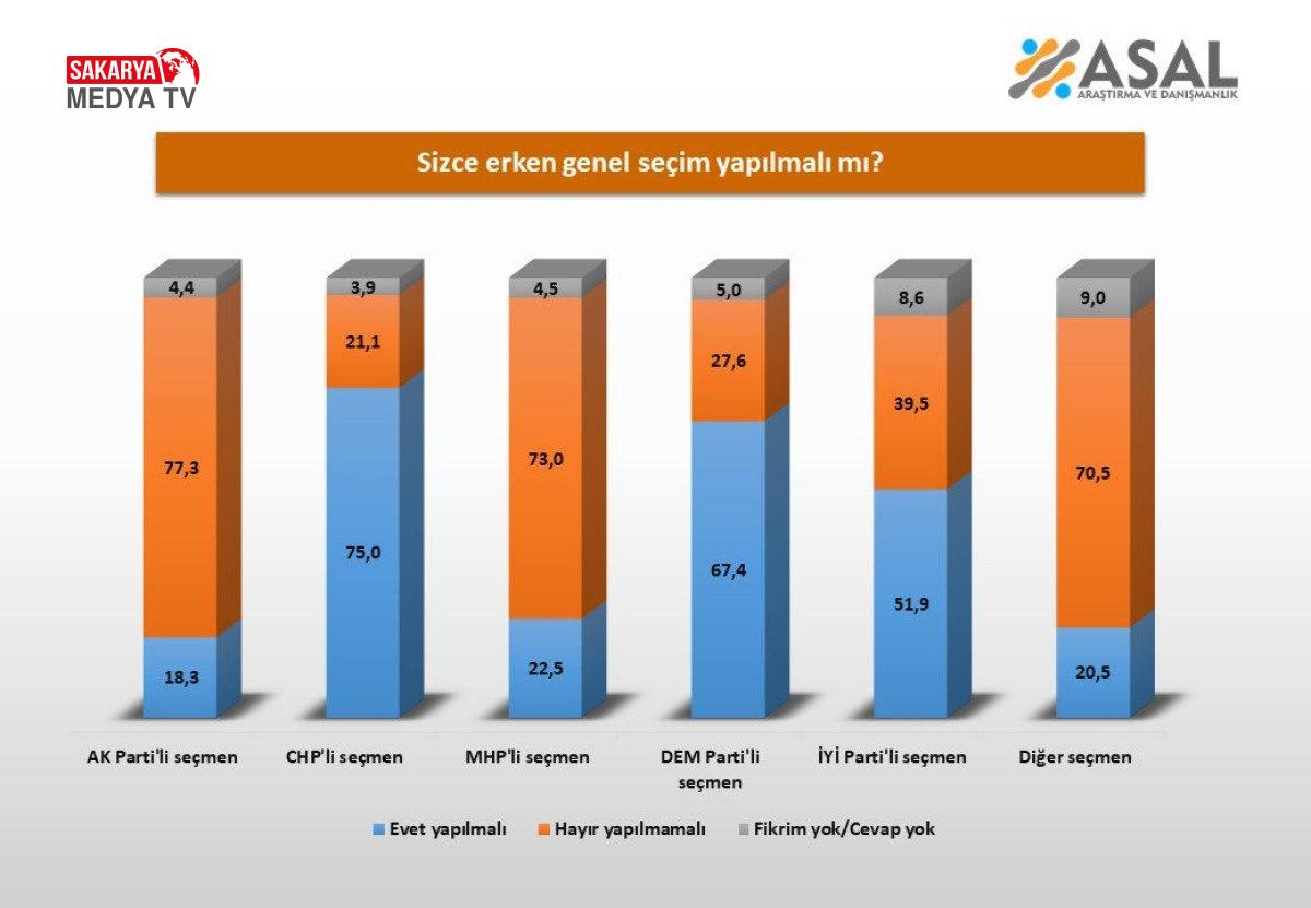 Erken seçimin yapılmasını isteyenlerin çoğunluğunu ise CHP ve DEM Partili seçmenler oluşturdu.