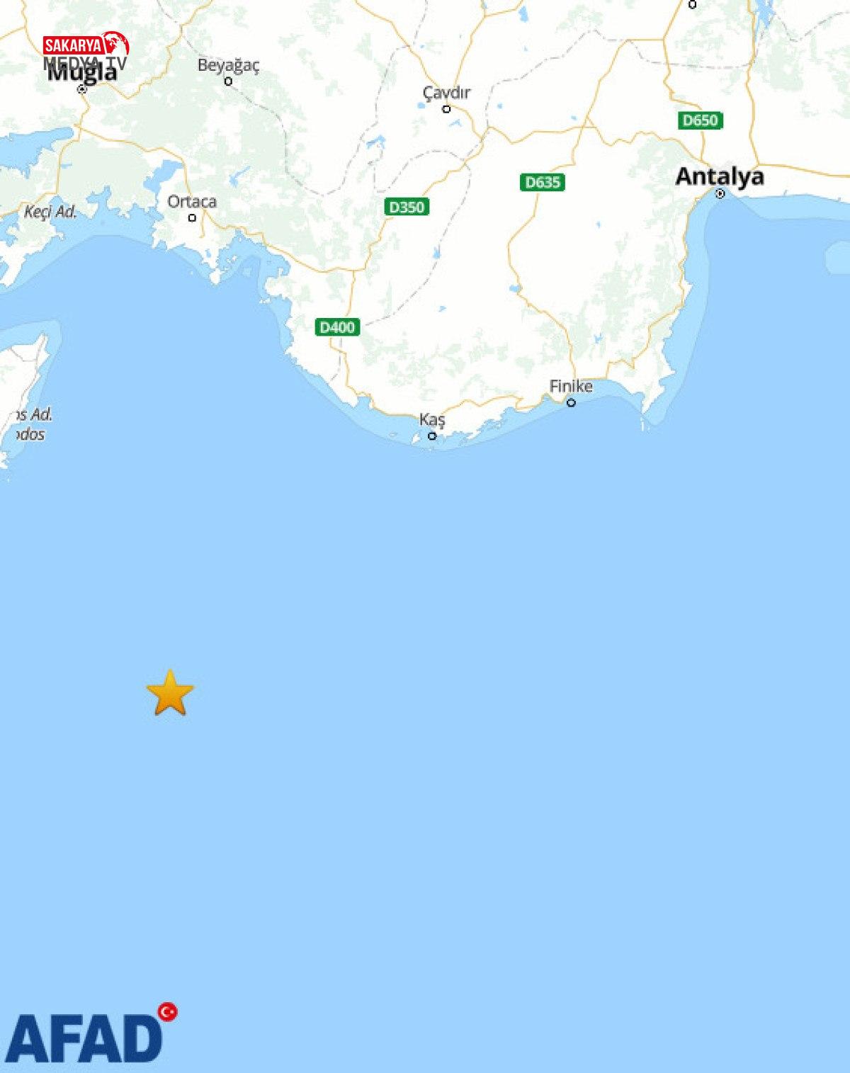 Saat 19.54 sıralarında yaşanan 4.7 büyüklüğündeki sarsıntı, Kaş ilçesine 113.96 kilometre uzaklığında meydana geldi.