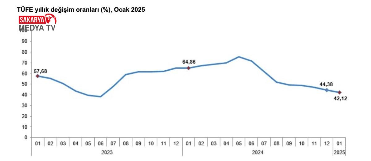TÜFE’deki değişim 2025 yılı Ocak ayında bir evvelki aya nazaran yüzde 5,03, bir evvelki yılın Aralık ayına nazaran yüzde 5,03, bir evvelki yılın birebir ayına nazaran yüzde 42,12 ve on iki aylık ortalamalara nazaran yüzde 56,35 olarak gerçekleşti.