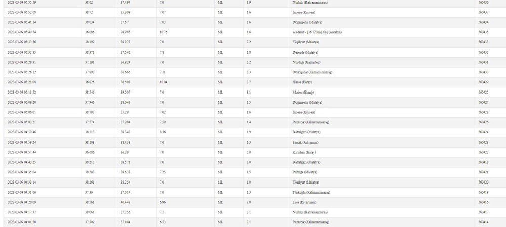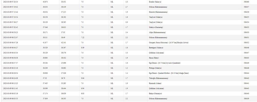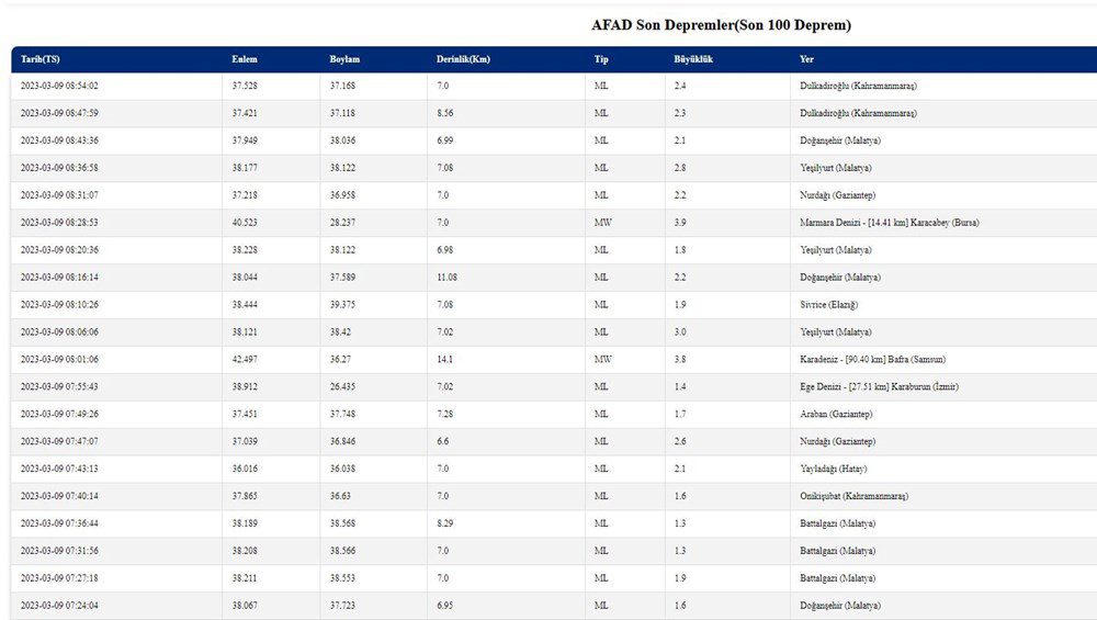 AFAD 9 MART TARİHLİ SON DEPREMLER