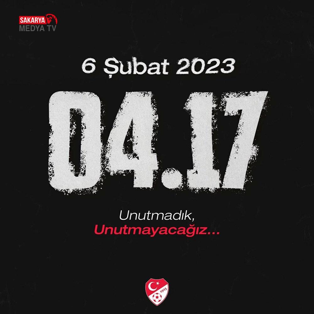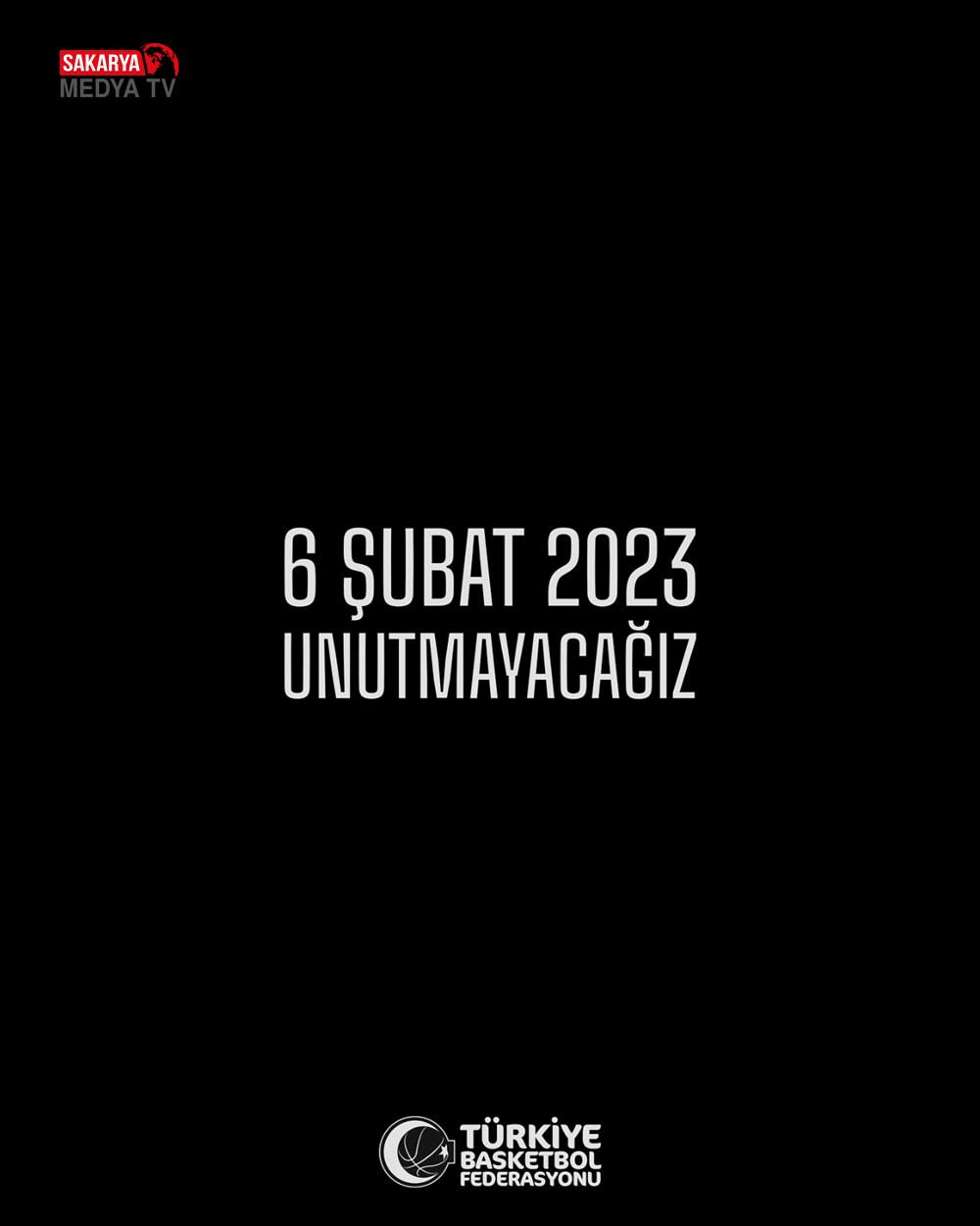 TÜRKİYE FUTBOL FEDERASYONU “6 Şubat 2023. Unutmadık, Unutmayacağız. Deprem felaketinde yaşadığımız acıyı unutmuyor, hayatını kaybedenleri hasret ve rahmetle anıyoruz. Milletimizin bir daha bu türlü bir acı yaşamaması dileğiyle…” TÜRKİYE BASKETBOL FEDERASYONU “Ülkemizi derinden etkileyen 6 Şubat sarsıntılarında hayatını kaybeden vatandaşlarımızı rahmetle anıyoruz.