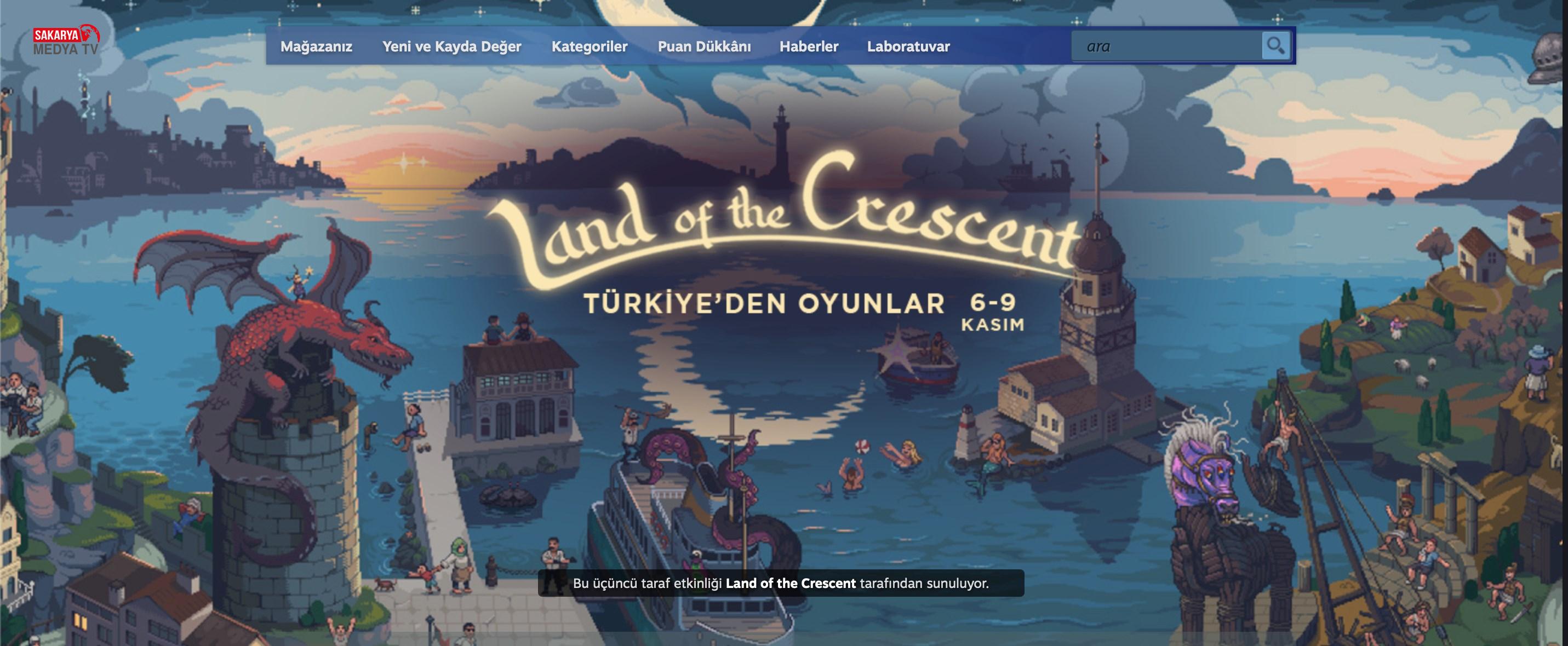 Steam’de Land of the Crescent: Games from Turkey etkinliği başladı. Türk oyun festivali olarak tanımlayabileceğimiz bu festivalle Türk yapımı oyunlar dünyaya tanıtılıyor. Festivalle birlikte popüler Türk yapımı oyunlar indirime girdi. Land of the Crescent (Hilal Ülkesi) olarak tanımlama yapan Steam, mevcut Türk yapımı oyunların yanı sıra yakın zamanda çıkacak oyunların tanıtımlarına da yer veriyor. Dileyen oyunseverler bu oyunlara ön sipariş verebiliyor.