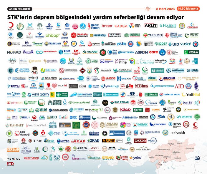 Sivil toplum kuruluşları (STK), Kahramanmaraş merkezli depremlerden etkilenen bölgelerde yaraları sarmak için insani yardım çalışmalarına devam ediyor.