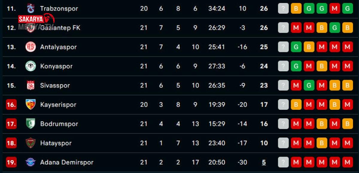 Fenerbahçe, ligde üst üste 5. galibiyetini elde ederek puanını 51’e çıkardı. Küme düşme sınırında bulunan Adana Demirspor, Hatayspor ve Bodrum FK yenilgi yaşarken, Kayserispor ise beraberlikle haftayı kapattı.