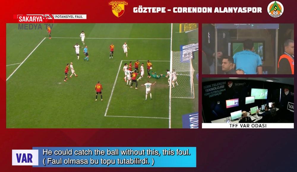 Göztepe – Alanyaspor maçının 41. dakikasında, mesken sahibi kadronun kullandığı köşe vuruşu sonrası hakem Arda Kardeşler elle oynama gerekçesiyle penaltı noktasını gösterdi. VAR ikazıyla durumu monitörden izleyen Kardeşler, faul olduğunu belirledi ve Alanyaspor lehine karar verdi.
