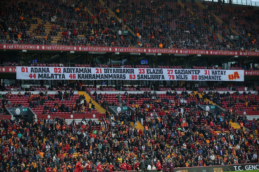 Nef Stadı’nda son maçını 5 Şubat’ta Trabzonspor ile oynayan Galatasaray, 6 Şubat’ta Kahramanmaraş merkezli depremler nedeniyle verilen aranın ardından ilk kez taraftarıyla buluştu.