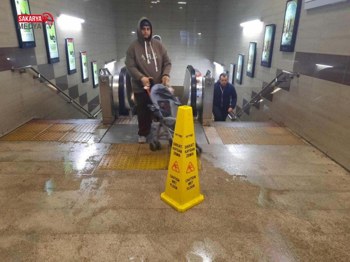 Metronun duvarlarından ve merdivenlerinden suların aktığı görülürken, su birikintilerinin oluştuğu alanlara ihtar levhaları konularak tedbir alındığı görüldü.