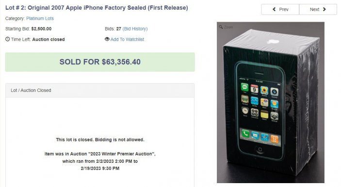 2007’den beri kutusu açılmamış iPhone, açık artırmada 63 bin dolara alıcı buldu. LCG Auctions tarafından düzenlenen açık artırmada açılış 2 bin 500 dolarla yapılmıştı. iPhone’un sahibi Karen Green, telefonun kendisine 2007’de hediye edildiğini ancak operatörle olan sözleşmesinden ötürü cihazı kullanamadığını söylüyor. Birinci nesil iPhone SIM kilitli olduğundan Green, telefonu kullanmadan öylece bıraktığını belirtiyor.