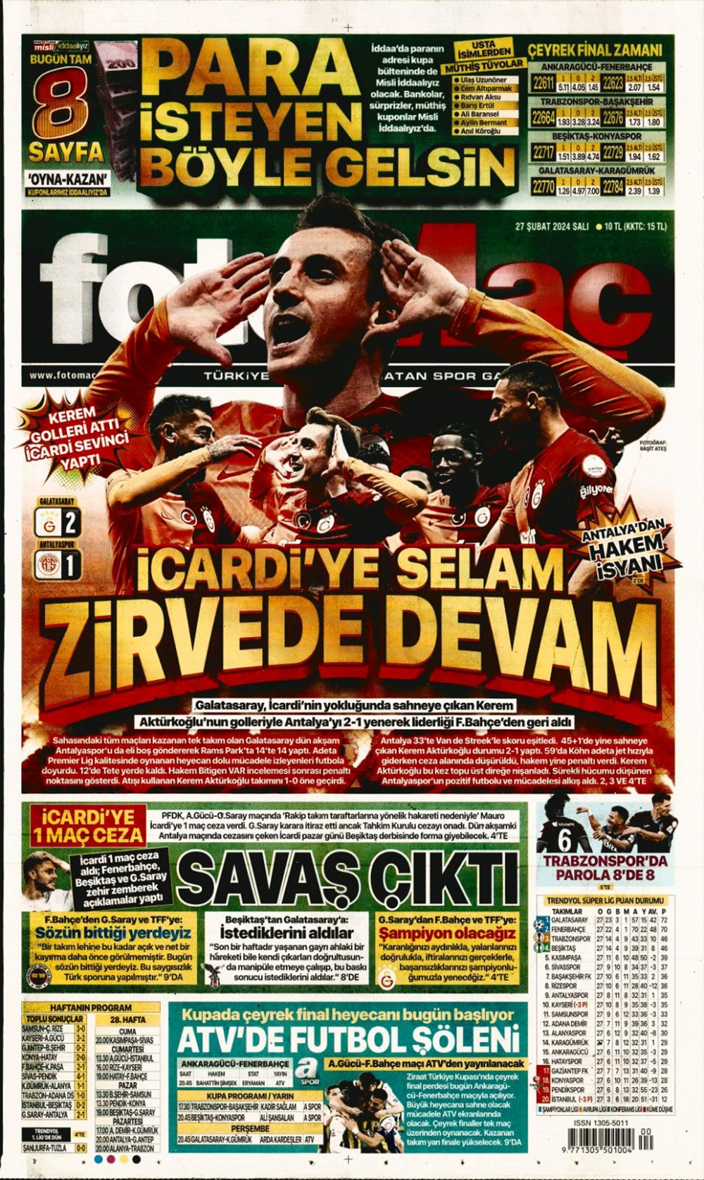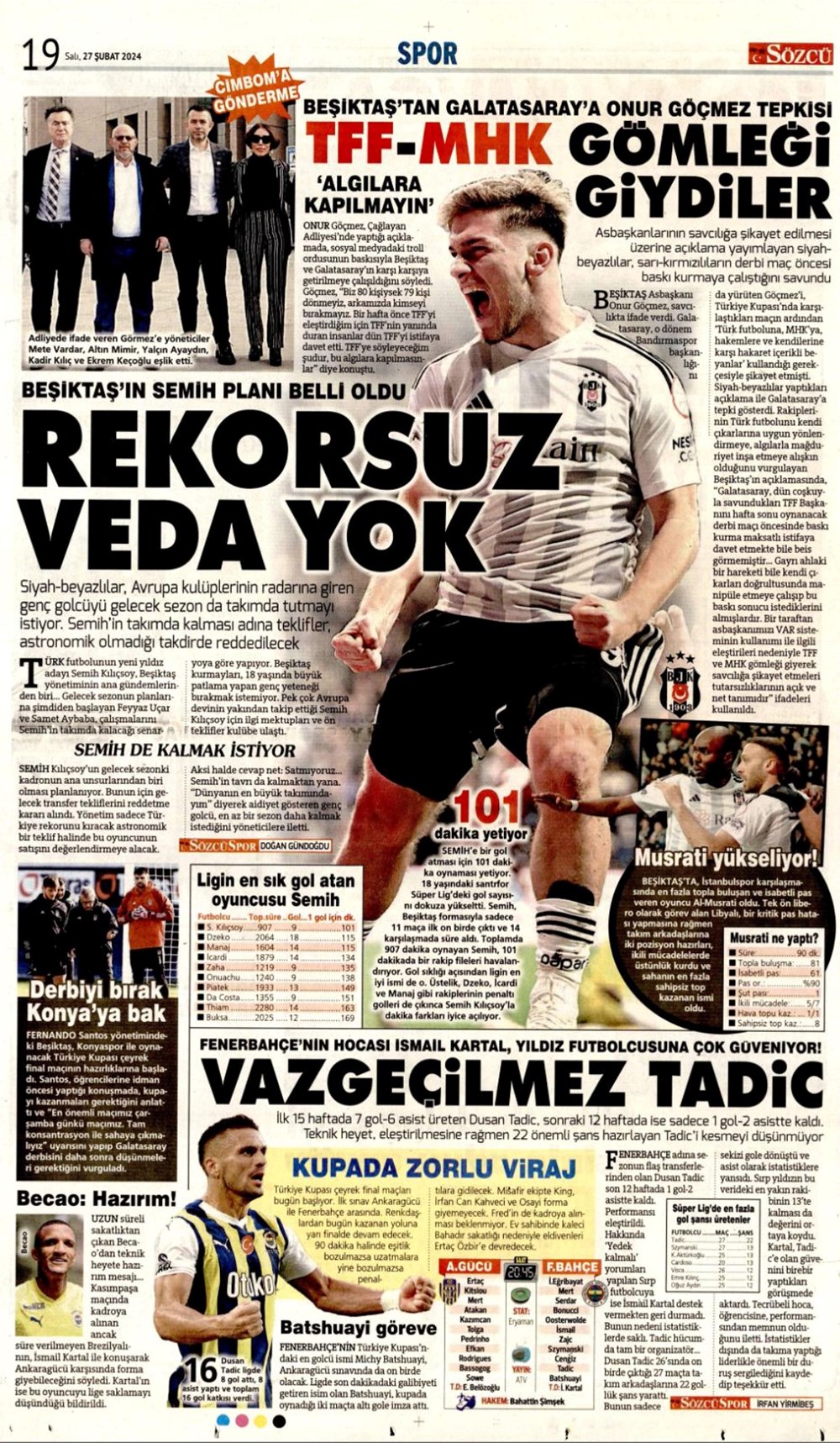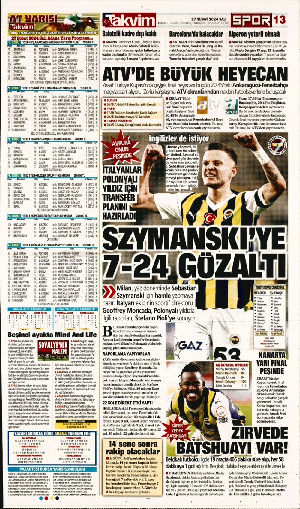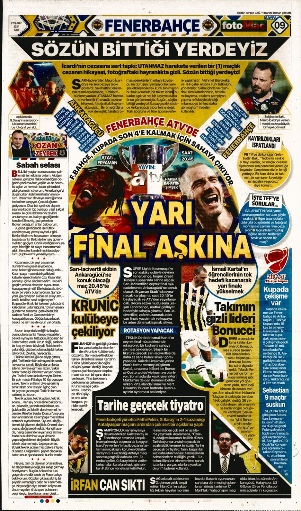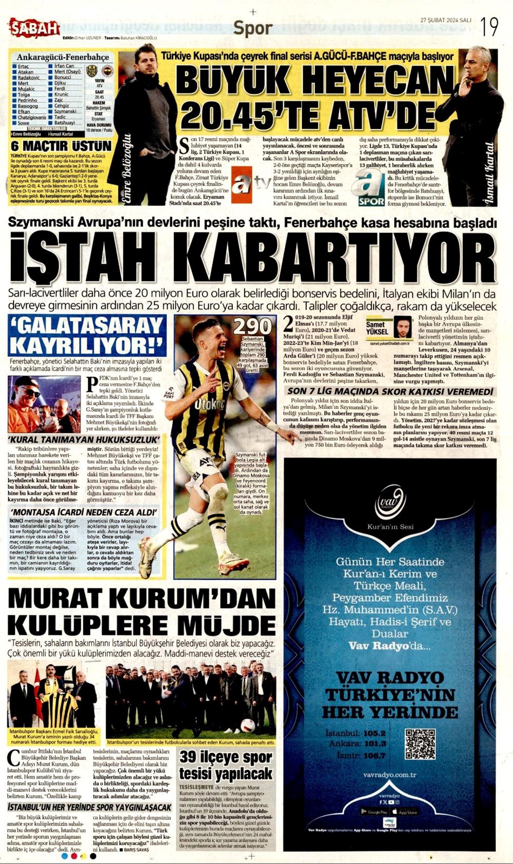 “Fenerbahçe’de Roberto Firmino bombası” (9 Şubat 2025 spor manşetleri)