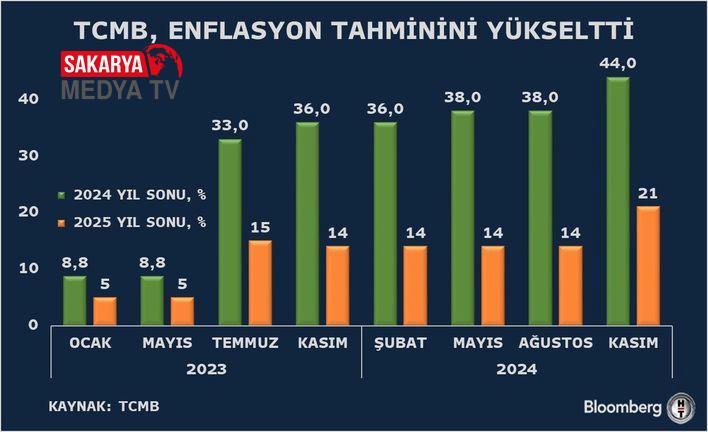 TCMB 2024 yıl sonu enflasyonunu yüzde 38’den yüzde 44’e çıkardı. 2025 varsayımı de yüzde 14’ten yüzde 21’e çıkardı.
