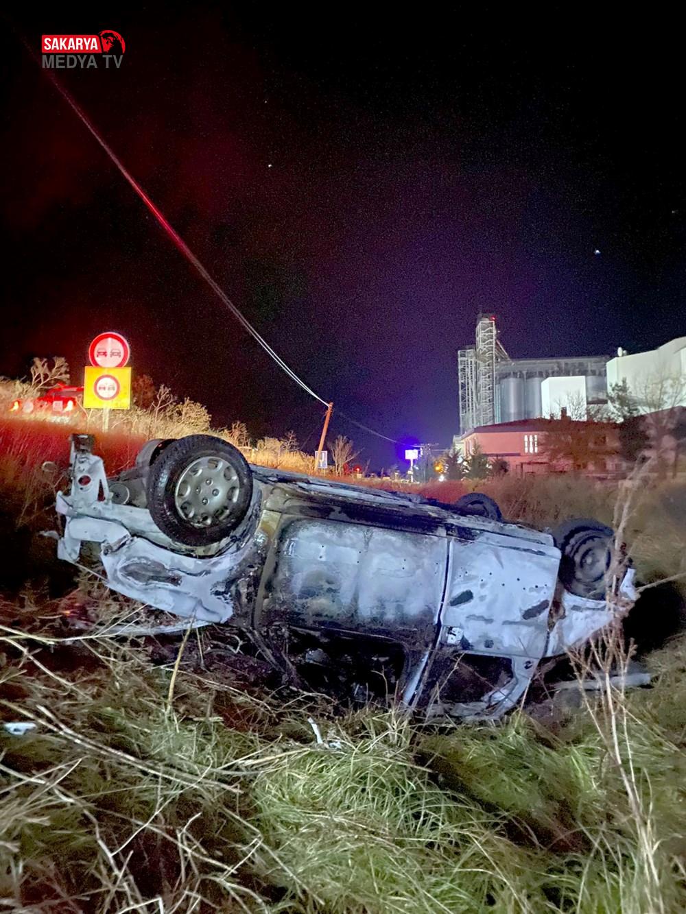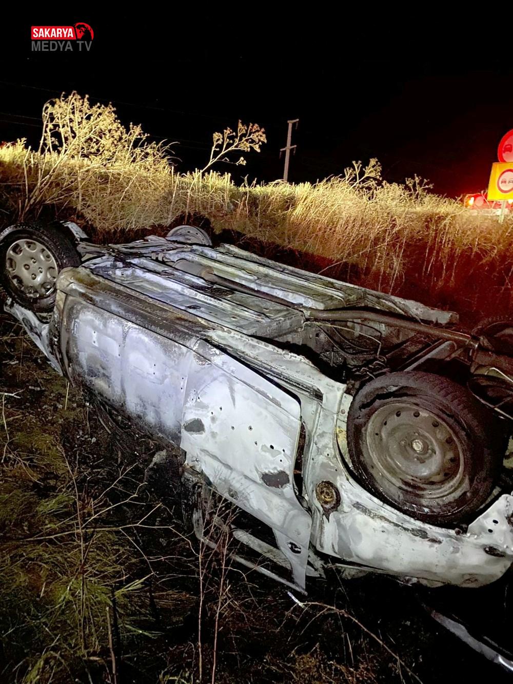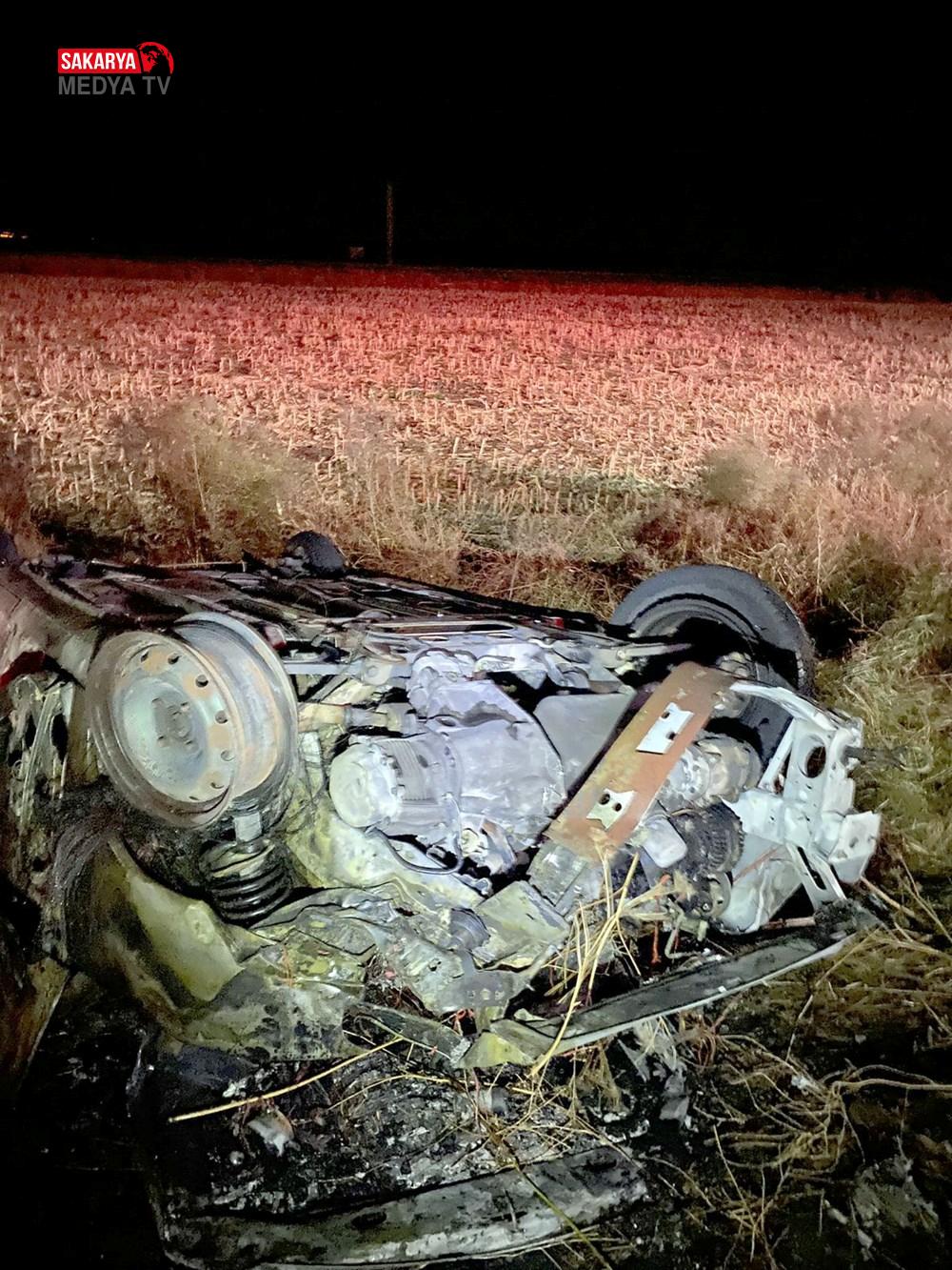 Becit arabadan fırlarken, araç ise alev aldı.