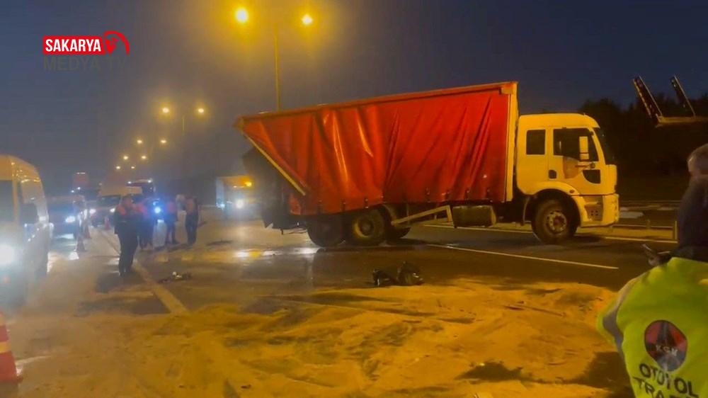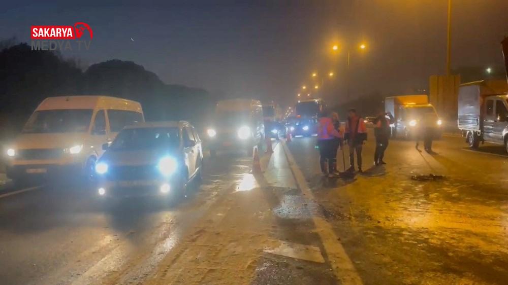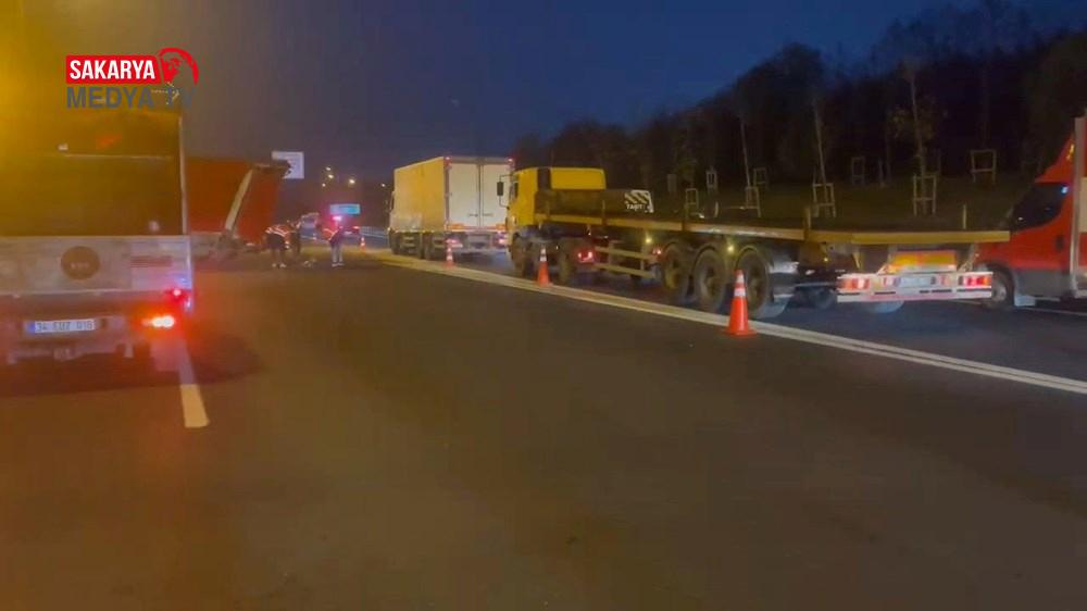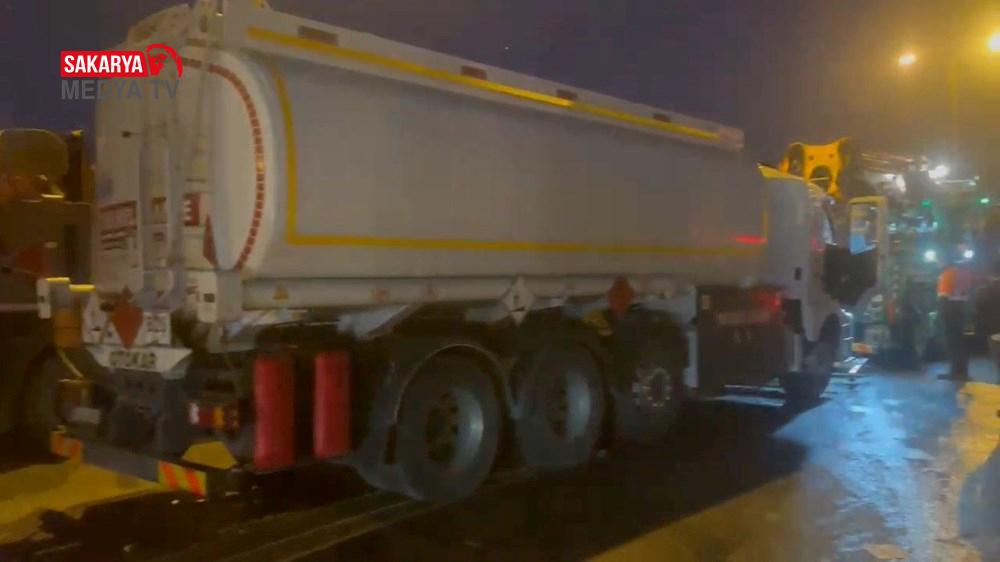 TEM Otoyolu Hadımköy gişeler mevkiinde, yakıt tankeri kamyona geriden çarptı.