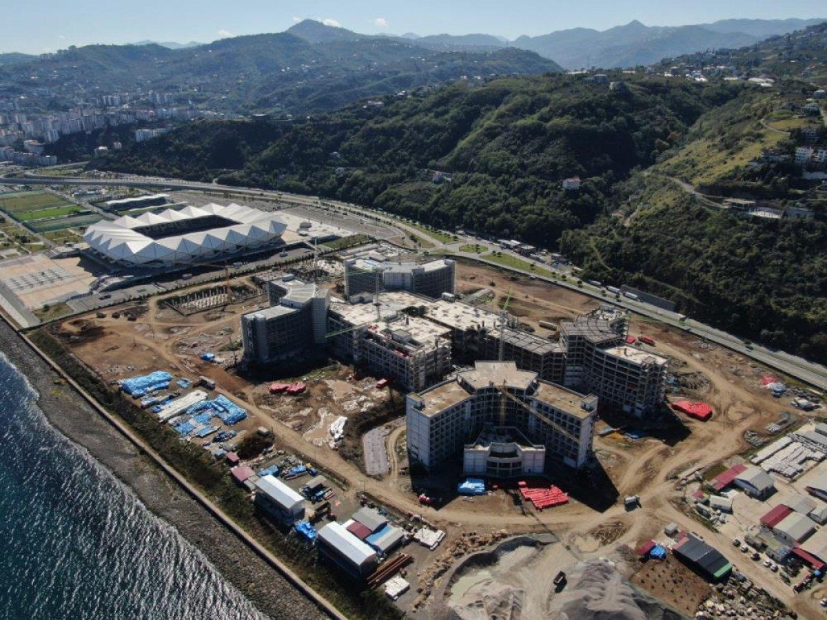 Yapımı devam eden Şehir Hastanesi ile ilgili bilgiler veren Trabzon Vilayet Sıhhat Müdürü Dr. Hakan Usta, “Öncelikle 900 yataklı bir hastane yapılıyordu. Bunu yaklaşık 250’si ağır bakım yatağı olarak şekillenmişti. Geri kalan yaklaşık 650 yatakta tek kişilik odalar biçiminde planlanmıştı. Tıpkı planda doğrultusunda gidiyor. Ve bu odalarımız gerektiğinde çift kişilik kullanabileceğimiz formda planlamıştık. O nedenle de bin 461 yatağa kadar sözünü kullanabilmiştik. Şimdiki öngörümüz yaklaşık bin 300 yatağa kadar hesap edebilir durumdayız ve ona nazaran planlamalarımızı yapıyoruz. Hem içerisine koyacağımız tıbbi aygıtlar hem işçi manasında bin 300’e kadar formda planlama yapıyoruz. Dört tane kulemiz vardı. KVC ve Onkoloji kuleleri, genel hastane ve bayan doğum kuleleri de üretim imalatları da devam ediyor. İnşallah bittiğinde de bölgemize hem sıhhat turizmi açısından hem halkımızın sıhhati açısından önemli bir yapısal sorunu ve teknik meseleleri ortadan kaldırmış olacağız” dedi.