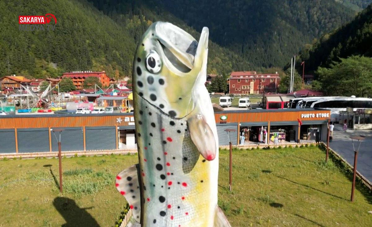 DHA Trabzon’un Çaykara ilçesindeki dünyaca ünlü turizm merkezi Uzungöl’de, kırmızı benekli alabalık için heykel yapıldı. Uzungöl’ün kırmızı benekli alabalıkla anılmasına dikkati çekmek isteyenlerin yaptırdığı heykel ise 7 metre uzunluğunda. 7 metre uzunluğundaki alabalık heykeli, göle hakim noktada oluşturulan ve deredeki azgın suları andıran platform üzerine konuldu. Maket heykel, Uzungöl’e gelen yerli ve yabancı ziyaretçilerin ilgi odağı oldu.