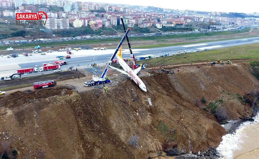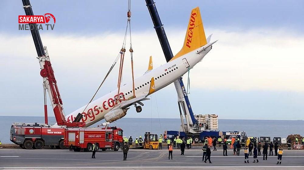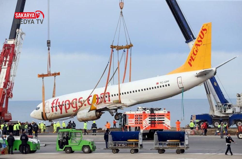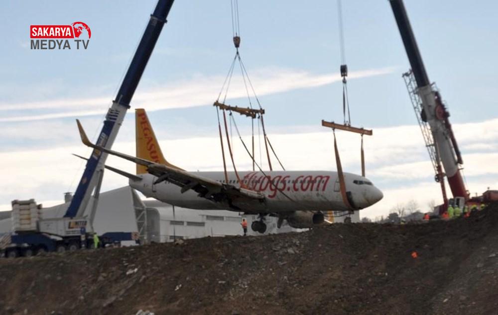 İki vinçle 100 kişilik ekibin 20 saat süren çalışması ile bulunduğu yerden çıkarılan uçak, güvenli bölgeye çekilerek, uzman ekiplerce incelendi.