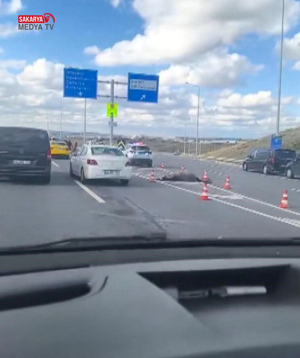 İstanbul Havalimanı yolu D-20 Karayolunda sabah saatlerinde sürücüler yolda at sürüsüyle karşılaştı. Akan trafiğin ortasında başı boş dolaşan atlar trafiği tehlikeye attı.