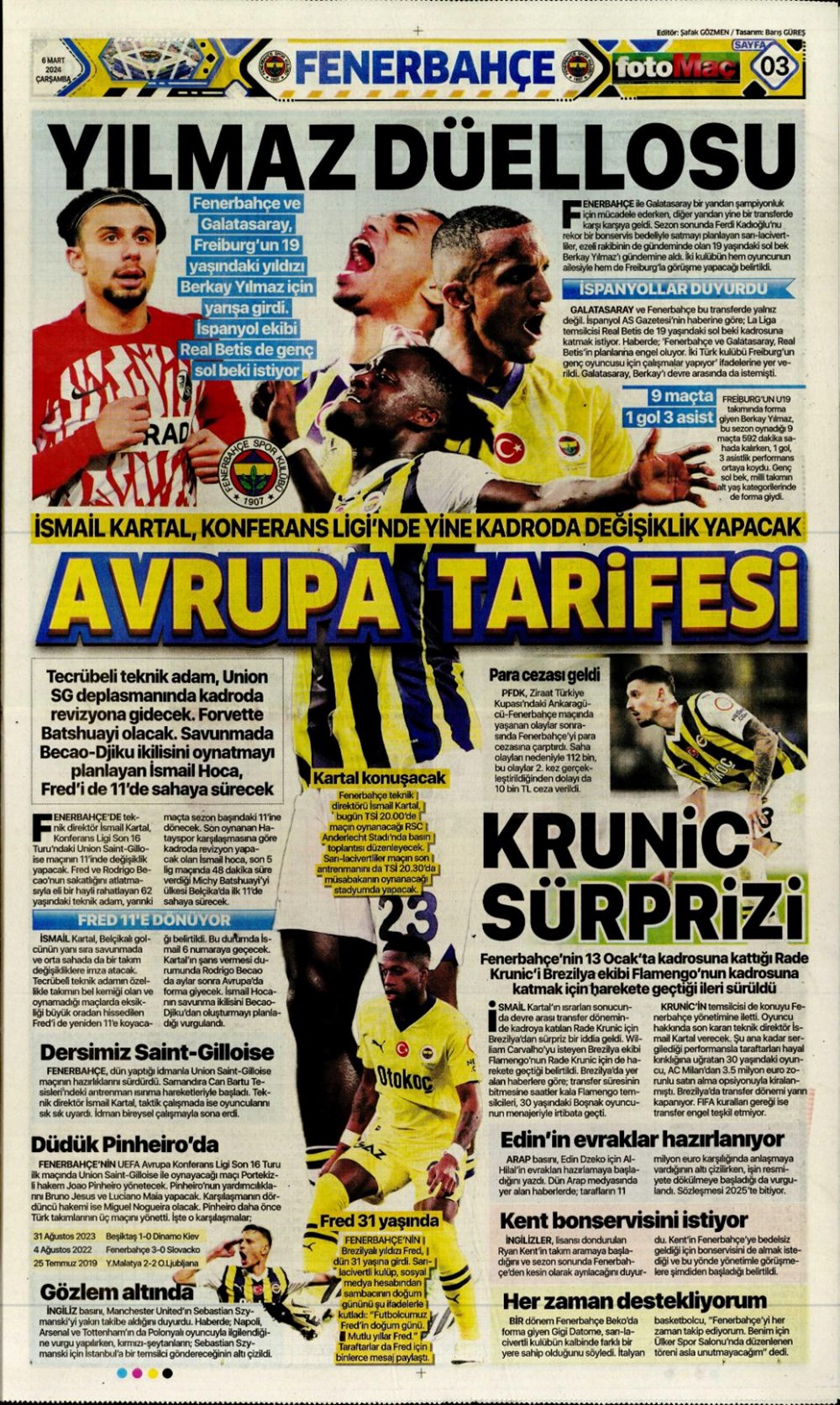 “Fenerbahçe’de Roberto Firmino bombası” (9 Şubat 2025 spor manşetleri)