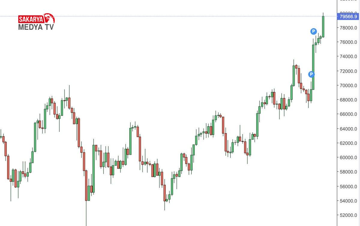 ABD’deki seçimin ilk gününde 76 bin 400 dolara kadar çıkan para birimi, bugün Arizona zaferi ile birlikte 80 bin dolara fırladı. Para birimi şu anda 79 bin 663 dolardan işlem görüyor.