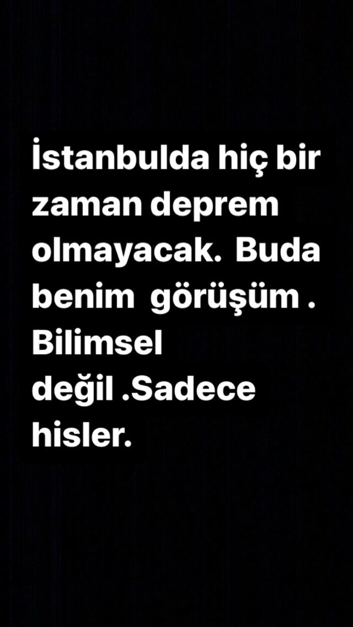 İstanbullu takipçilerine seslenen Ekinci, “İstanbul’da deprem olmayacak.” dedi.