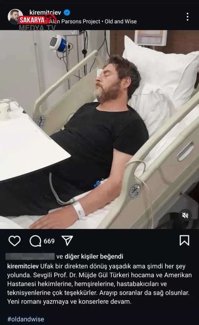 Yüksek tansiyon nedeniyle hastaneye kaldırıldığı öğrenilen ünlü isim, toplumsal medya hesabından sıhhat durumuna ait açıklama yaptı. Üç gün tedavi gördüğü hastane odasından paylaşım yapan Kiremitçi, “Ufak bir direkten dönüş yaşadık lakin artık her şey yolunda. Arayıp soran herkese teşekkür ederim. Yeni romanı yazmaya ve konserlere kaldığımız yerden devam!” dedi.