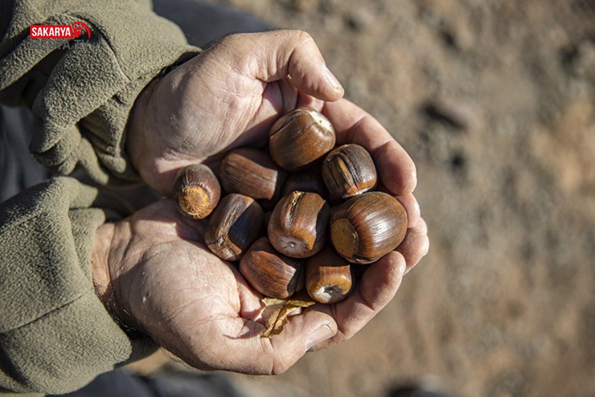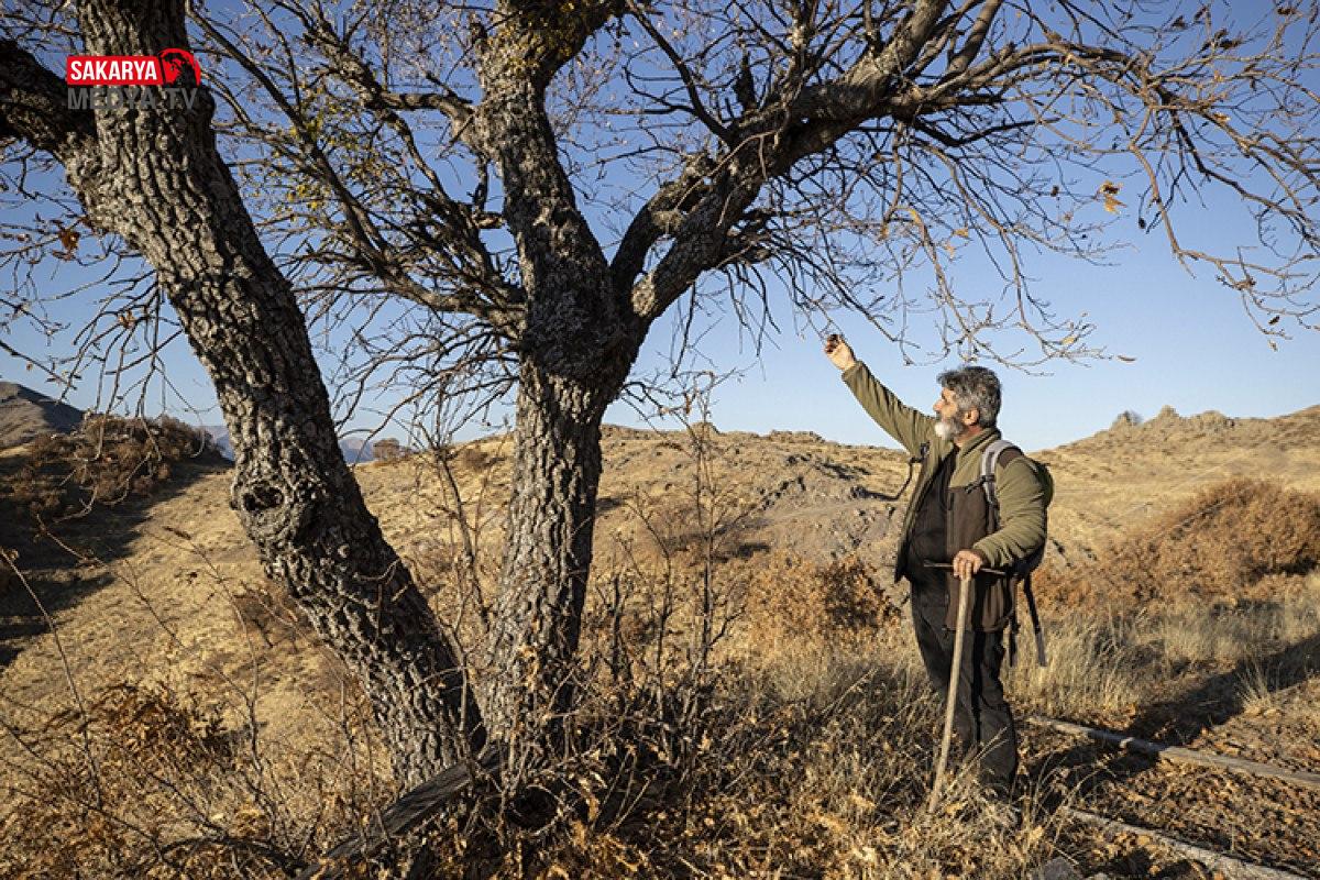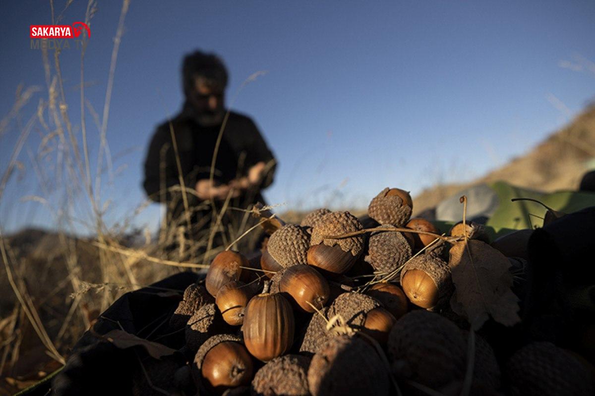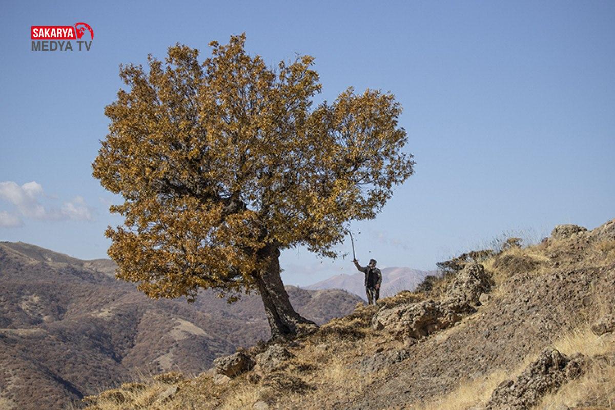 Doğanın kucağında huzur bulan Caner Canerik, olgunlaşan meşe palamutlarını büyük bir özenle dalından topluyor.