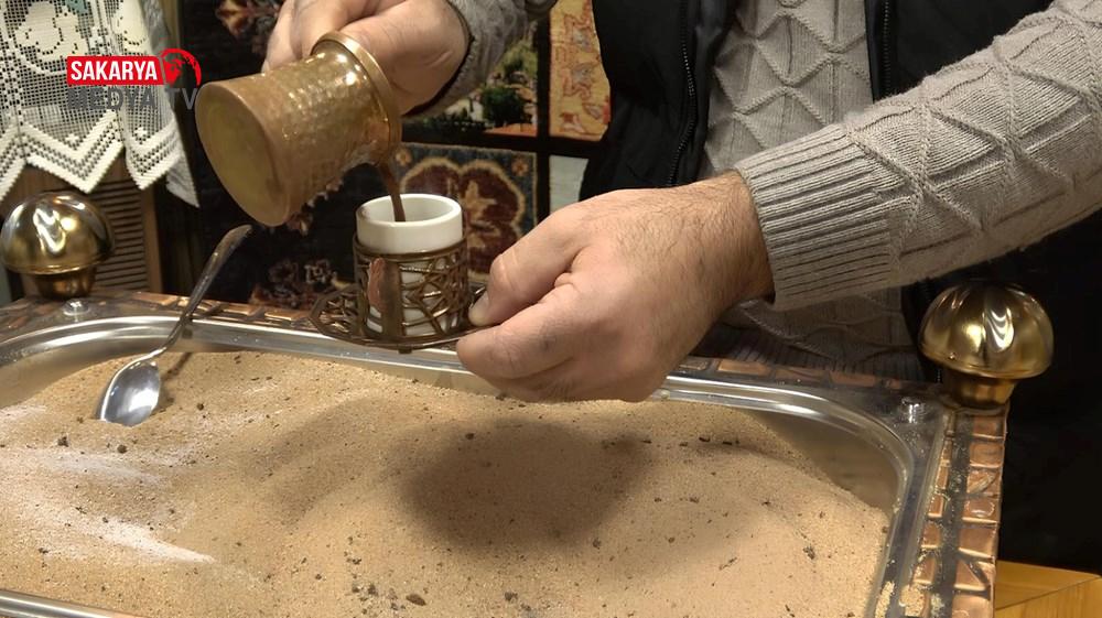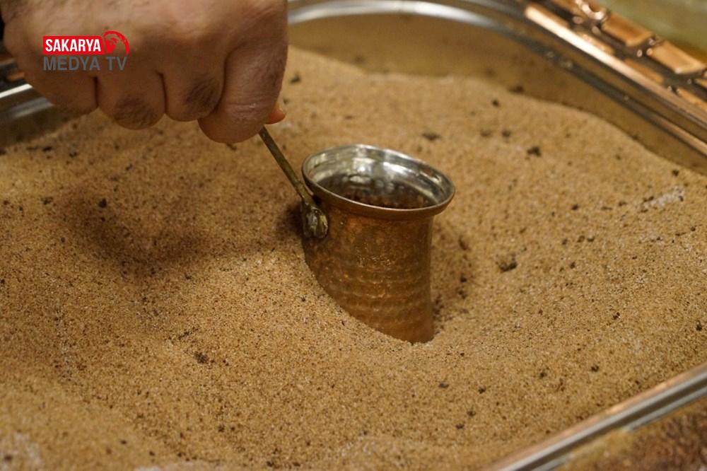 Öncelikle kumu ve tuzu 350 derecede ısıtıyoruz. Akabinde cezvemizi tuz ile kumun içine gömerek yavaş yavaş köpürene kadar pişiriyoruz.
