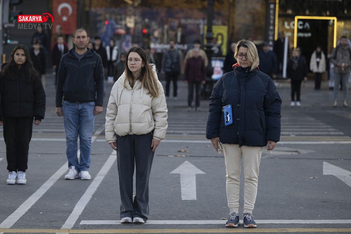 Ankara’da Ayrancı Pazarı’nda saat 09.05’te sirenlerin çalmasıyla vatandaşlar hürmet duruşunda bulundu.