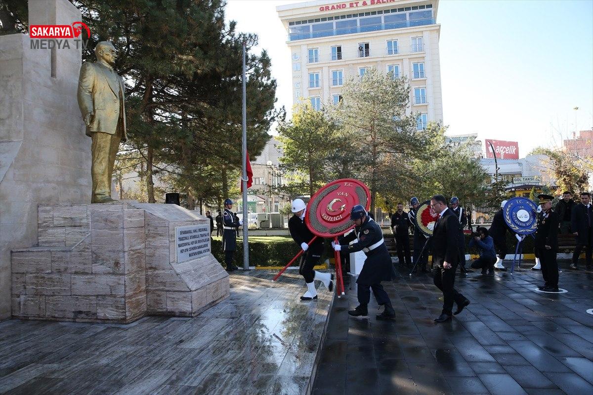 Van Valiliği önünde Atatürk Anıtı’na çelenklerin sunulmasıyla başlayan merasimde, vatandaşlar saat 09.05’te sirenlerin çalmasıyla hürmet duruşunda bulundu.