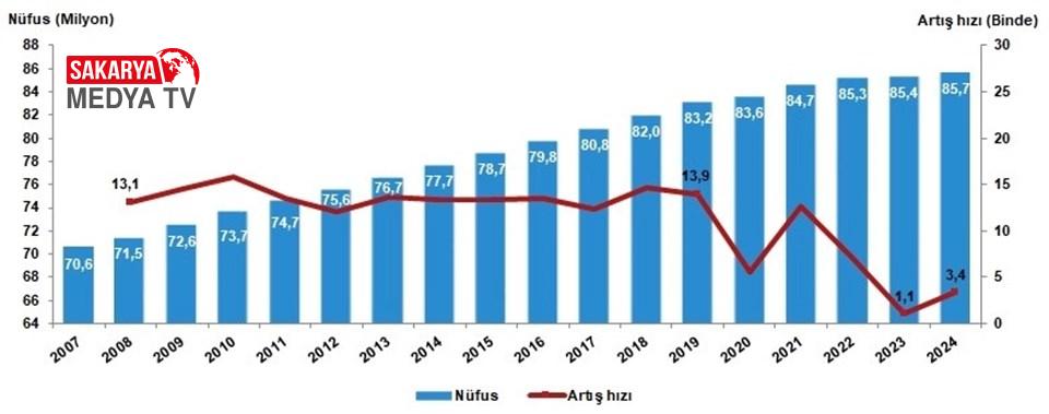 Nüfus ve yıllık nüfus artış suratı, 2007-2024 TÜRKİYE’DE 40 İLİN NÜFUSU AZALDI