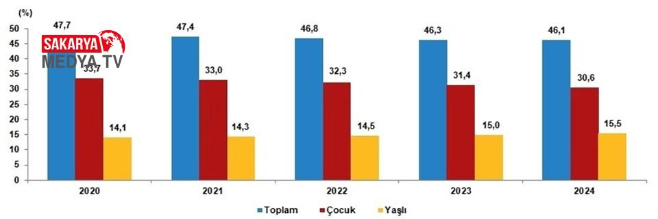 Yaş bağımlılık oranları, 2020-2024 TÜRKİYE’DE KİLOMETREKAREYE 111 KİŞİ DÜŞERKEN İSTANBUL’DA 2 BİN 934 KİŞİ DÜŞTÜ