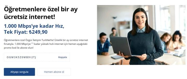 TurkNet, öğrencilere ve öğretmenlere özel kampanya başlattı. Bu kampanya sayesinde TurkNet’e yeni abone olacak öğretmenlere ve üniversite öğrencilerine 1 ay ücretsiz internet sunuluyor. TurkNet’i taahhütsüz ve limitsiz olarak kullanabilir ve bu kampanya sayesinde 1 ay ücretsiz internet fırsatından yararlanabilirsiniz. TurkNet Öğretmen kampanyasından nasıl faydalanılır?