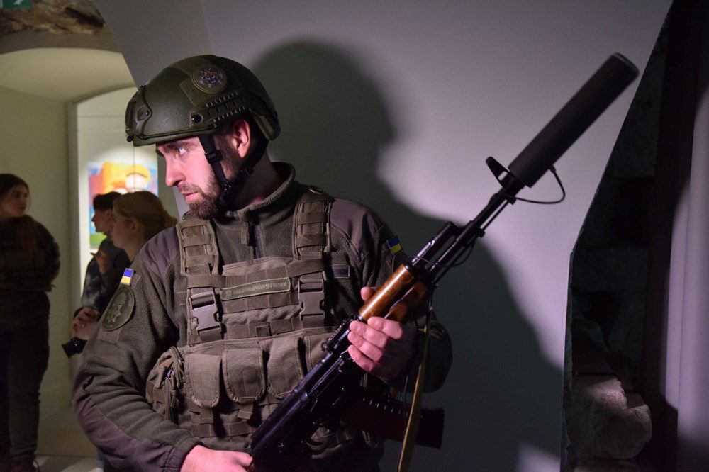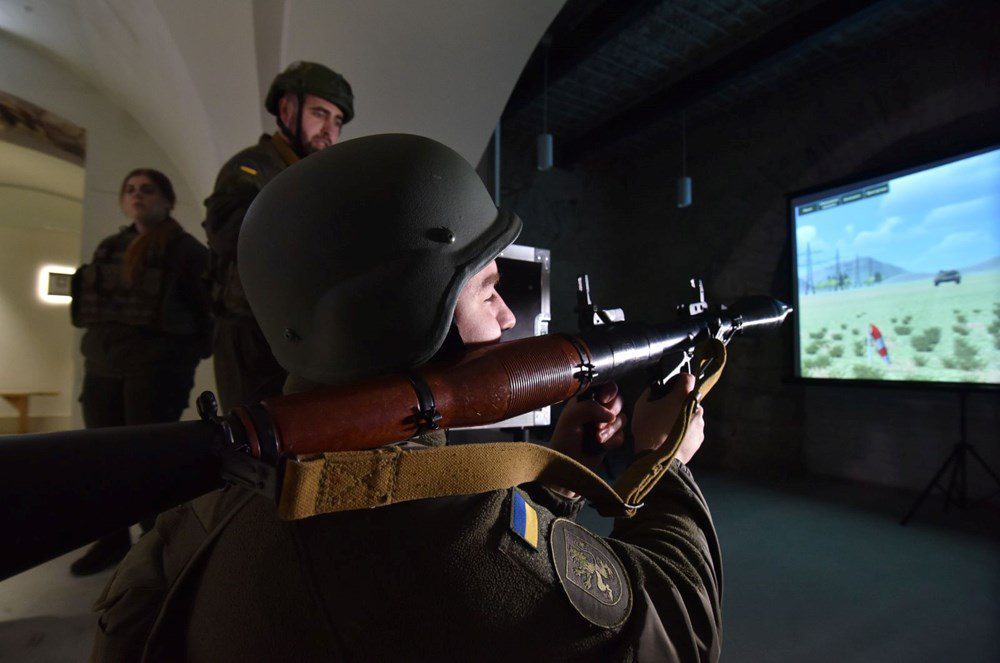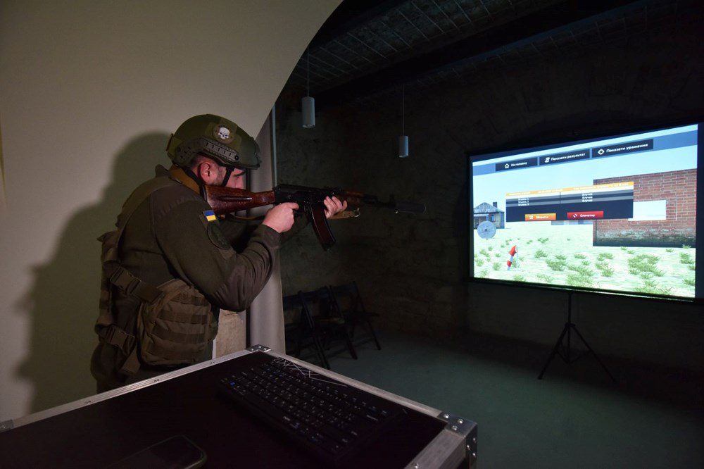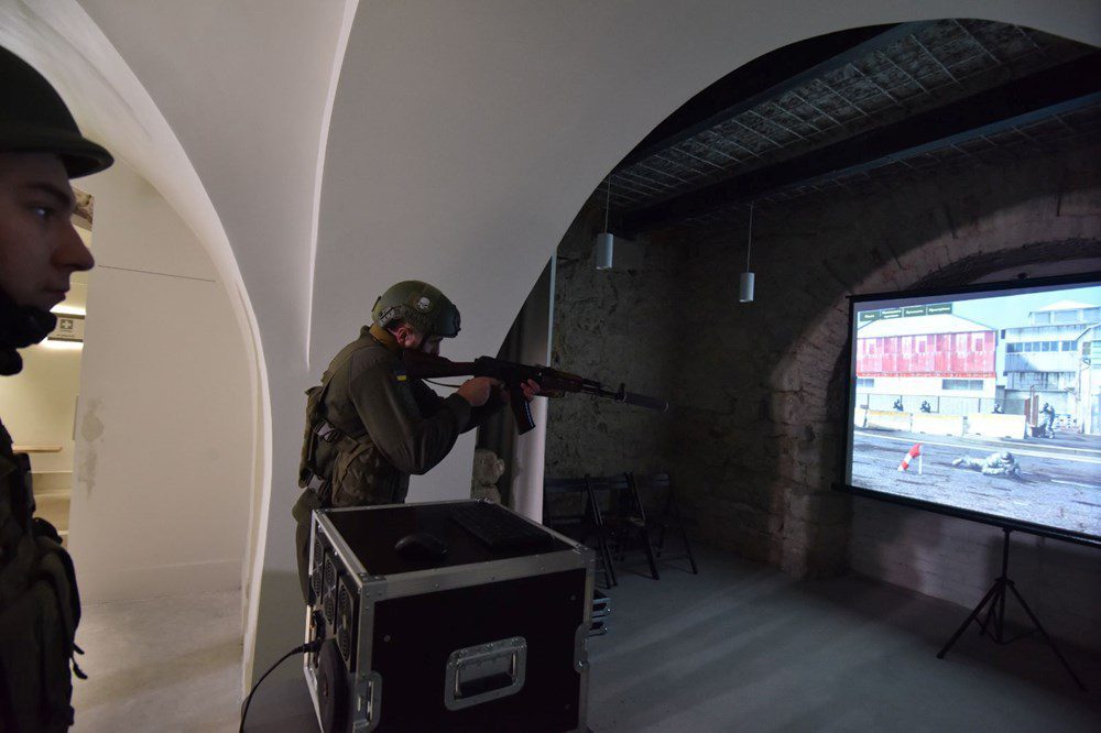Ukraynalı askerler Lviv’deki interaktif atış poligonunda (yangın eğitim simülatörü) atış eğitimine katılıyor. Ukrayna Ulusal Muhafızları için bu atış poligonu Lviv Belediye Meclisi tarafından satın alındı.