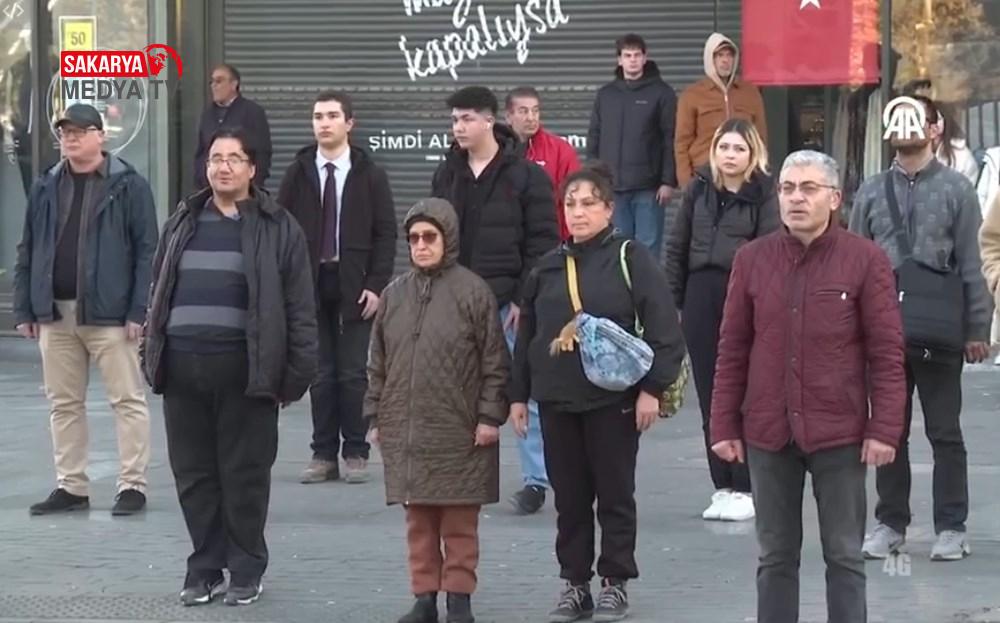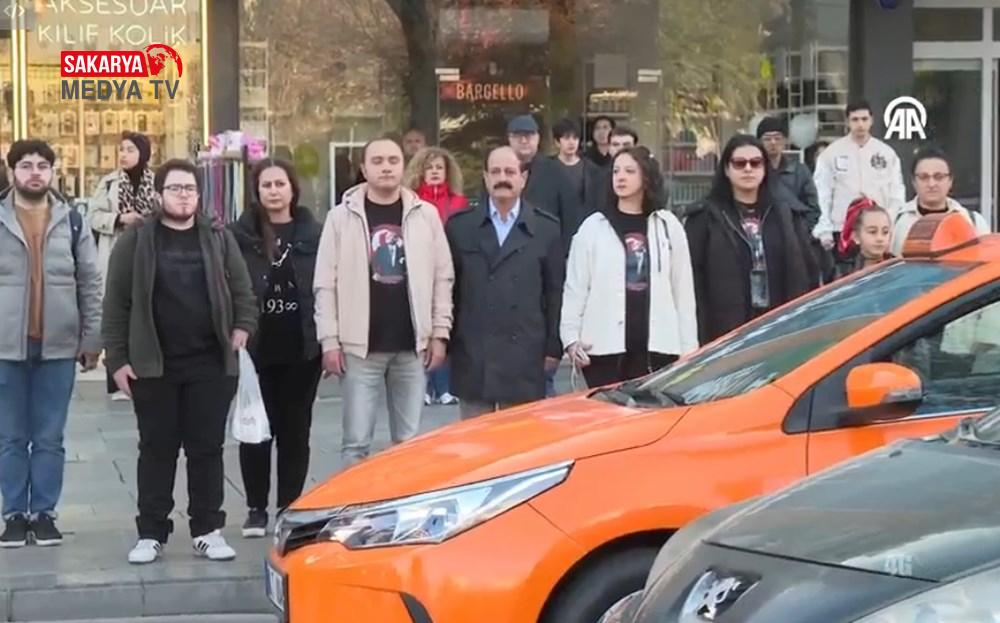 Atatürk’ün hayata gözlerini yumduğu 09.05’te sirenlerin çalmasıyla, aracında olanlar araçlarından inip hürmet duruşuna geçti.