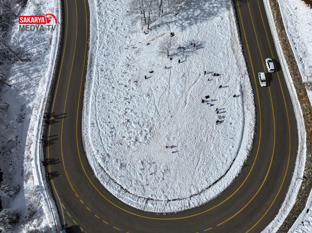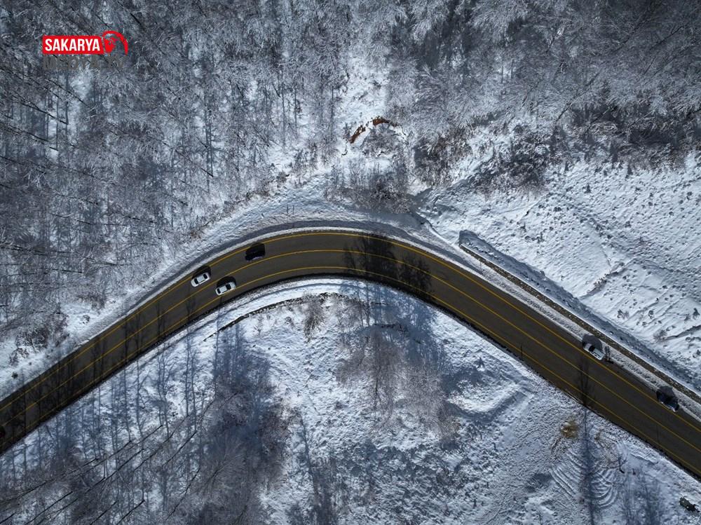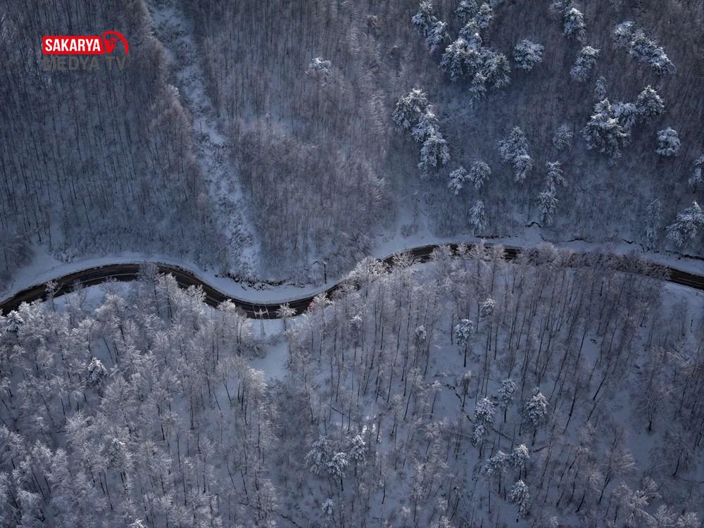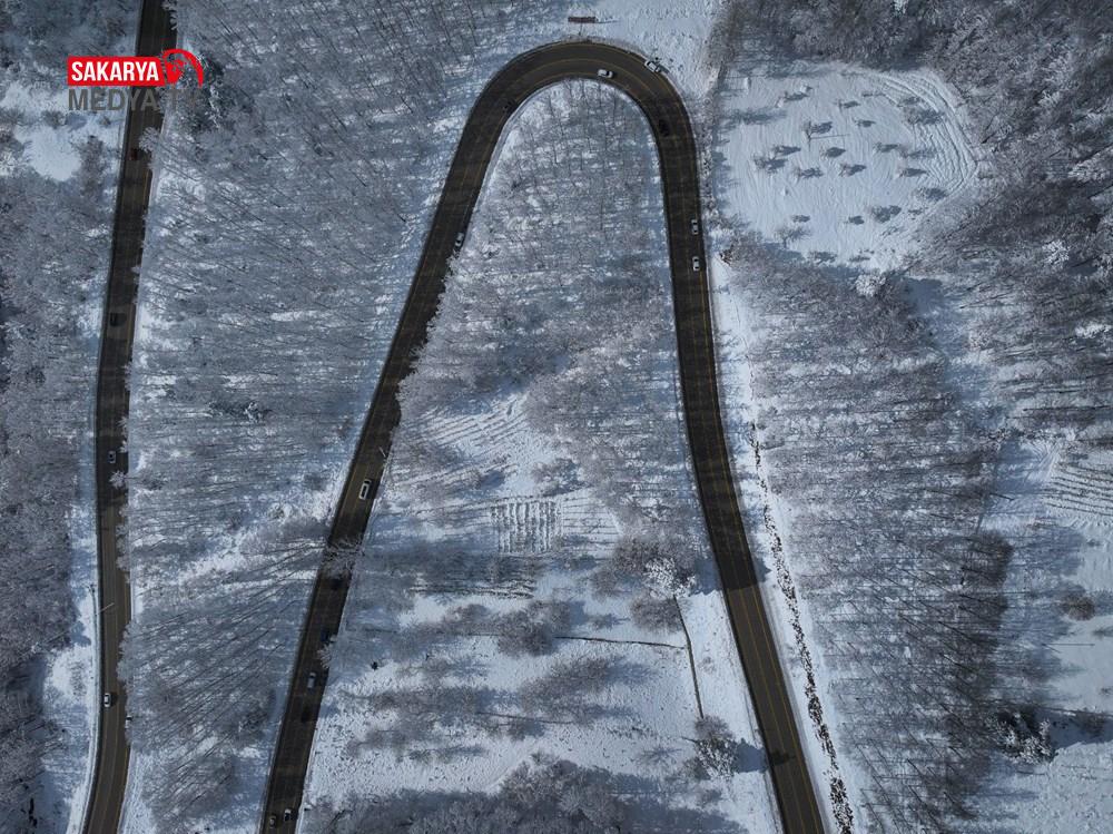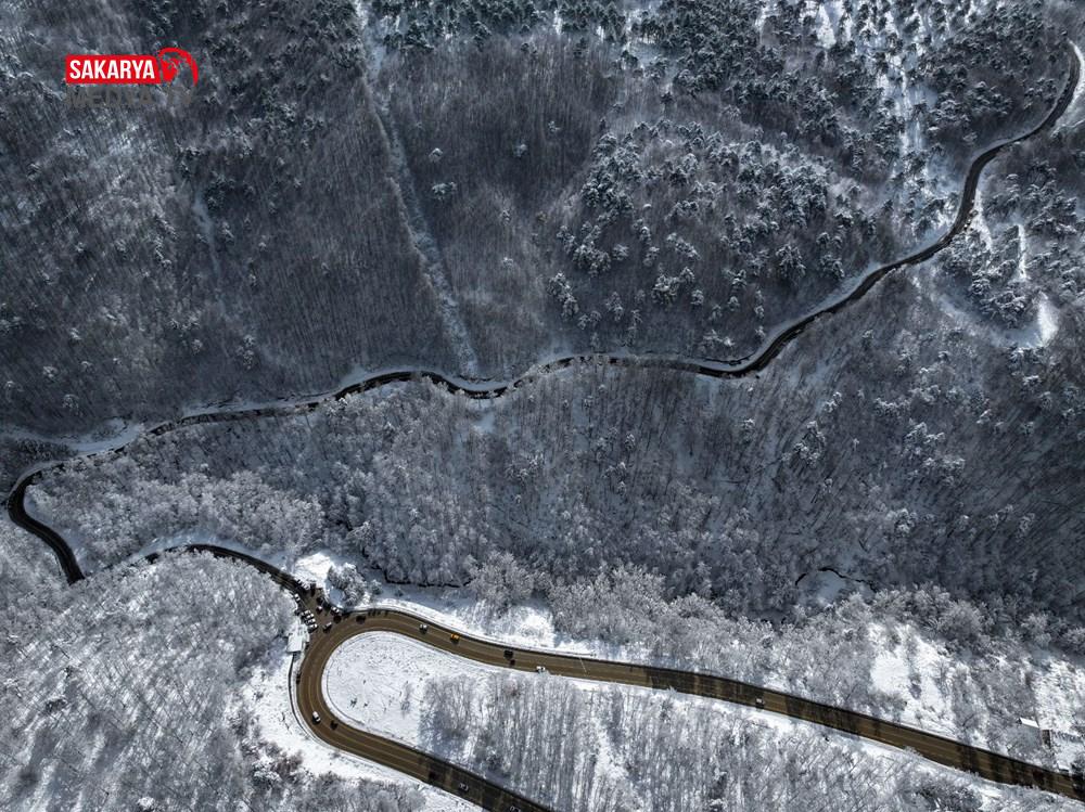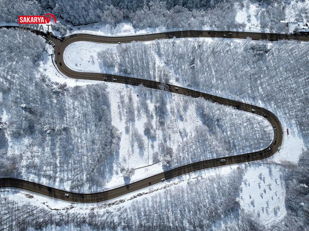 Zirveye hakikat çıkan kıvrımlı yollarla bütünleşen Uludağ’ın, fotoğraf tablolarını andıran görünümü drone ile kaydedildi.